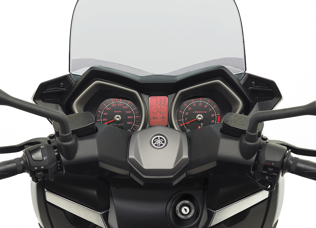 La strumentazione ibrida, con indicatori di velocità e giri motore analogici e computer di bordo digitale, si adatta alla perfezione all’immagine esclusiva di uno scooter che fa tendenza anche nel design.