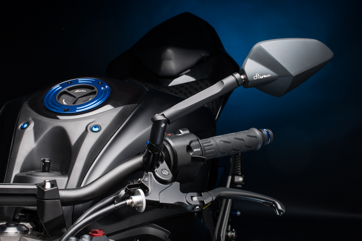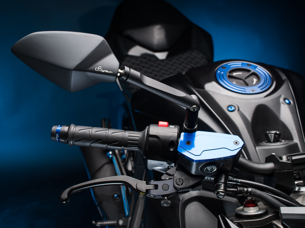 Il tocco finale viene dato dai nuovissimi specchi in alluminio omologati con vetro azzurrato, e marchio LighTech inciso al laser sul bellissimo colore nero opaco del corpo specchio.