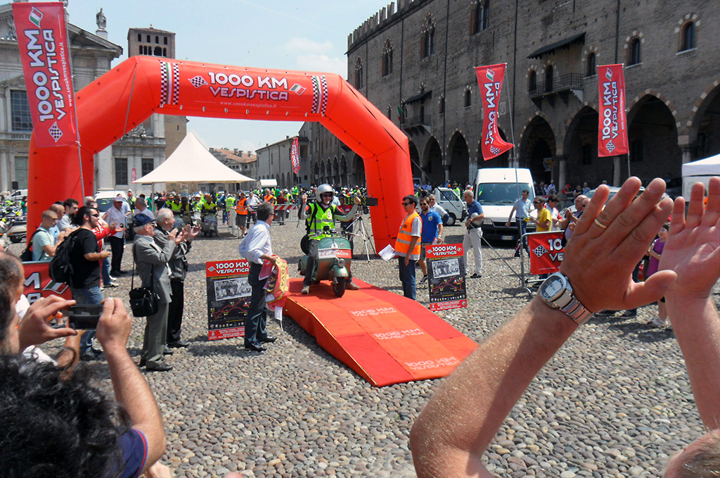 Venerdì prossimo 24 maggio oltre 300 vespisti, provenienti da tutta Europa e dall’America, avvieranno i loro motori in piazza Sordello a Mantova. Il percorso della prima lunga giornata si concluderà a notte fonda a Ravenna (l’arrivo dei primi concorrenti è previsto dopo la mezzanotte) dopo aver toccato Rovereto e Treviso.