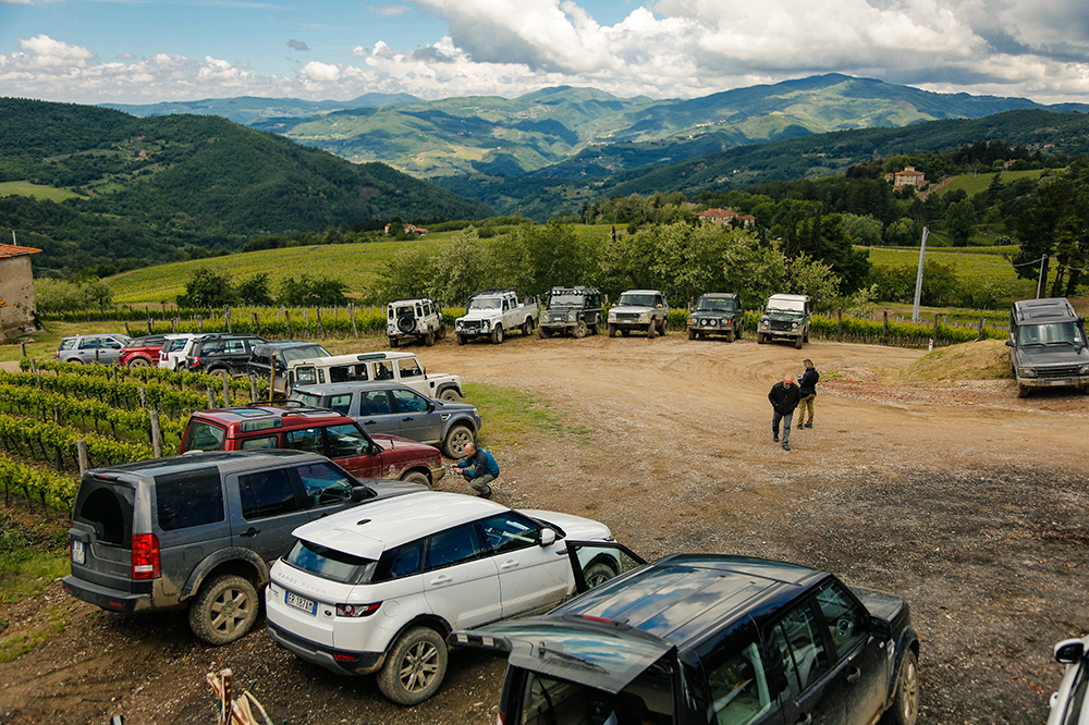 I partecipanti del Land Rover Day si sono inoltrati per oltre 1400 ettari nelle tenute di Nipozzano e Pomino, queste ultime di proprietà dei produttori vinicoli ” Marchesi de’ Frescobaldi “.