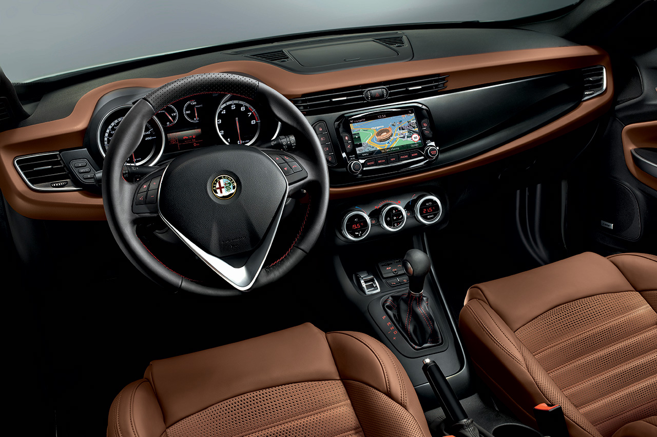 Design sportivo e una nuova forma che rinvia alla calandra Alfa Romeo anche per il volante, ora caratterizzato da un inserto in alluminio, da cuciture nere, bianche o rosse – a seconda degli interni e degli allestimenti – e un rivestimento in pelle di alta qualità realizzato con una schiuma specifica che garantisce una presa sicura e immediata. Infine, anche il vano bagagliaio è stato rinnovato con uno specifico rivestimento nero per l’intero volume (fondo, laterali e dietro i sedili posteriori). Il vano portaoggetti posto a sinistra dello sterzo, il vano superiore sul cruscotto e la presa USB da oggi posta vicino al selettore DNA per un impiego più comodo e immediato, completano le novità all’interno di Giulietta MY 2014.