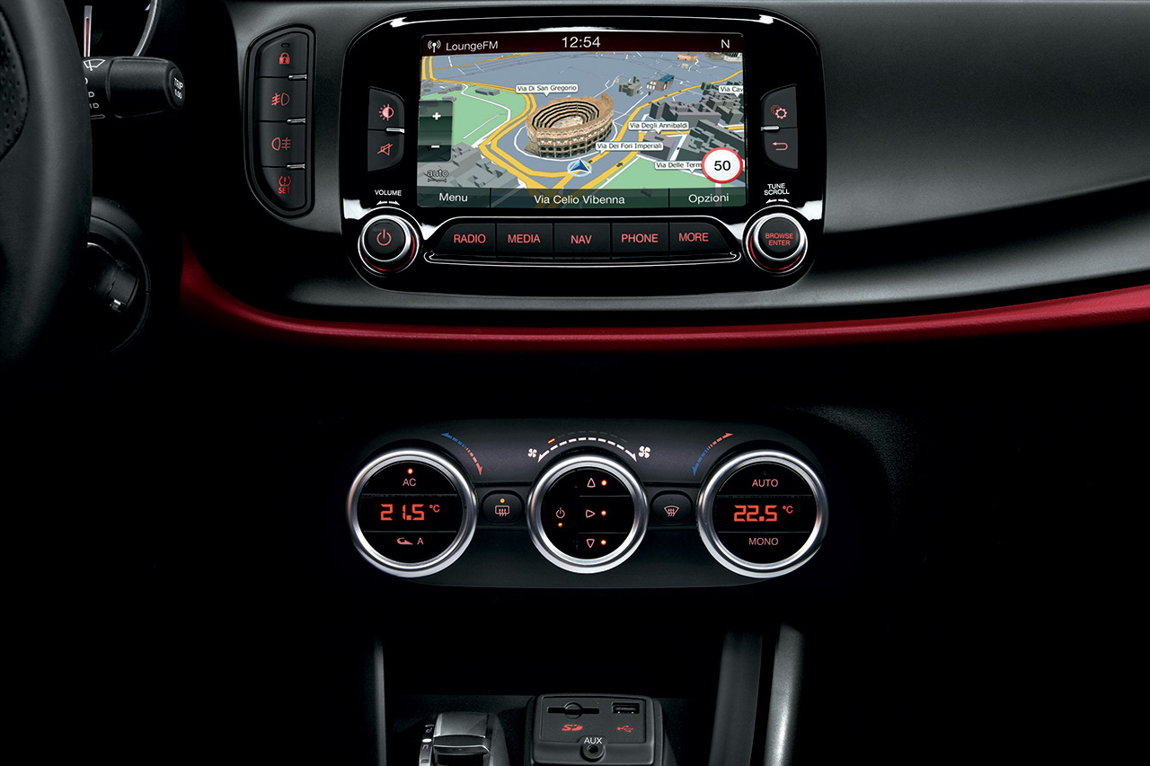 Studiato per arricchire l’esperienza di guida e perfettamente integrato nel design della vettura, l’innovativo dispositivo multimediale Uconnect è disponibile con touch-screen da 5″ o 6,5″ con navigatore satellitare e comandi vocali per la pratica gestione di più sorgenti e uscite multimediali. In particolare, il guidatore può accedere a tutte le funzioni principali, dalla radio analogica e digitale (DAB) – nei mercati che ne commercializzano l’optional – fino a tutti i principali supporti multimediali (mediaplayer, iPod, iPhone, smartphone) collegabili attraverso la porta USB e il connettore Aux-in.