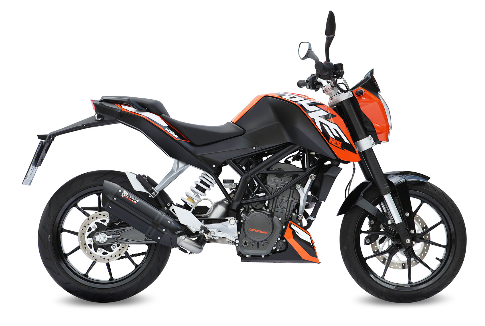 In MIVV hanno dedicato tempo ed energie a questa KTM. Perfettamente centrata per il pubblico giovane, meritava senza dubbio un’attenzione particolare. I test del produttore, atti a definire il perfetto accoppiamento tra gli impianti completi scelti e il raffinato mono 4T a iniezione della KTM 125 Duke 2013, hanno chiarito che si poteva ottenere di più, a livello di potenza e coppia, per la gioia degli smanettoni e di chi, amante della meccanica sofisticata e delle soluzioni aftermarket di pregio, fatica a trovare aziende interessate alle piccole cilindrate stradali. Abbiamo messo “sul podio” la 125cc ma in effetti va indicato che gli scarichi di seguito descritti sono perfettamente adattabili alla Duke da 200 cc.
