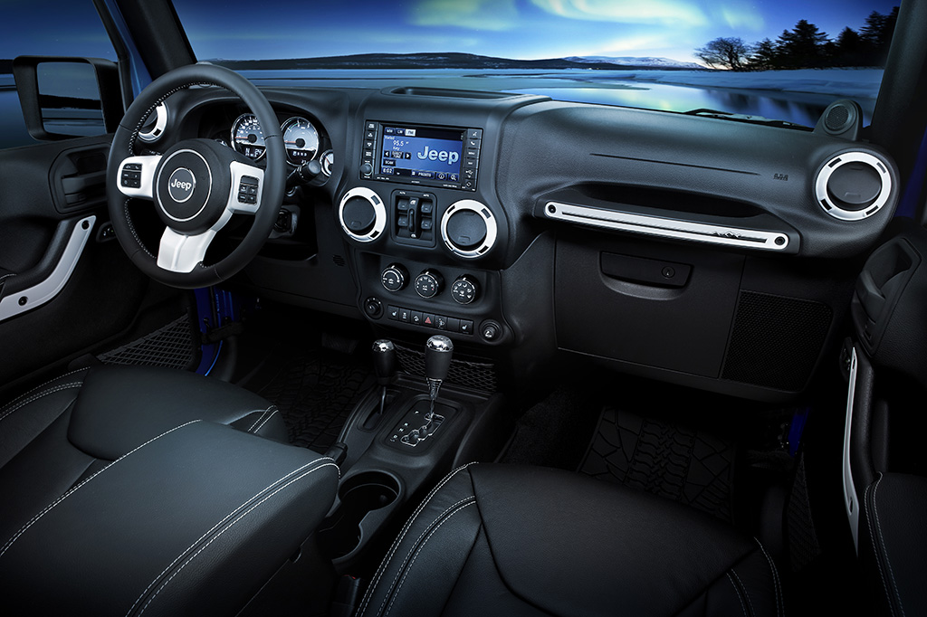 L’inedito quadro strumenti con cornici della strumentazione di colore Ceramic White lucido, sfondo blu e logo Polar e tappetini in gomma Mopar con motivo a rilievo che riproduce l’impronta degli pneumatici completano l’esclusivo allestimento degli interni della serie speciale Polar.