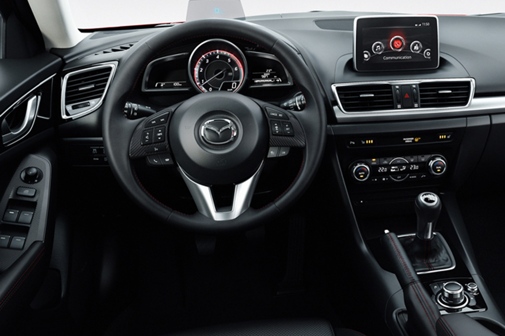 L’accesso a questi servizi è permesso dalla comodità degli interni di nuova generazione studiati da Mazda, per essere moderni ed eleganti, e che fanno il loro debutto sulla nuova Mazda3. L’abitacolo, che per molti aspetti è il più ampio o quasi il più ampio della categoria, è sdoppiato in due zone distinte per conducente e passeggeri, e concepito per offrire una guida senza stress, piacevole e sicura ed una atmosfera rilassante per i passeggeri. A complemento di questa riuscita architettura c’è una interfaccia uomo-macchina dalla notevole ergonomia. Particolarmente notevoli il Active Driving Display, il nuovo sistema Mazda di proiezione dei dati nel campo visivo del conducente, e la monopola centrale di comando HMI Commander, ridisegnata per consentire un utilizzo più agevole delle funzioni di infotainment della vettura senzadover staccare lo sguardo dalla strada.