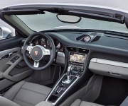 Gli interni delle nuove Cabriolet richiamano quelli della 911 Turbo Coupé. La versione S dispone di una dotazione particolarmente ricca e offre, tra gli altri, interni bicolor esclusivi nella combinazione nero-rosso Carrera, sedili sportivi adattivi Plus con regolazione a 18 vie e funzione Memory. Inoltre, i gusci degli schienali sono rivestiti in pelle con cucitura a doppia piega e rifiniti con vari elementi in carbon look. Il Bose Sound-System è installato di serie come nei precedenti modelli mentre su richiesta è disponibile, per la prima volta, l’impianto Burmester. Come optional sono disponibili anche il sistema adattivo di regolazione della velocità (ACC) a controllo elettronico tramite radar e l’indicatore del limite di velocità e di altri segnali stradali rilevati da telecamera.