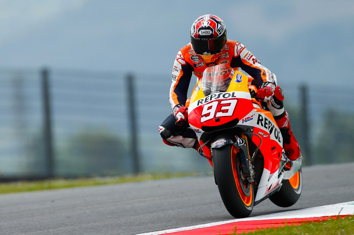 La Honda continua a dettare i tempi nel fine settimana di Aragon, ma le qualifiche di oggi lasciano speranze (e non poche) anche a Yamaha. Se è vero che Marc Marquez oggi ha conquistato la settima pole position stagionale e che Dani Pedrosa è terzo a 153 millesimi, è altrettanto vero che Jorge Lorenzo accusa 1 centesimo dalla pole, ma soprattutto Valentino Rossi perde la prima fila per appen 5 millesimi.