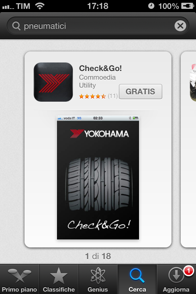 L’app Check&Go! di Yokohama Italia si diffonde sempre di più, diventando la prima a comparire sull’App Store (https://itunes.apple.com/it/app/check-go!/id483486590?mt=8) in caso di ricerca attraverso le parole “pneumatici”, “gomme” e “yokohama”.
