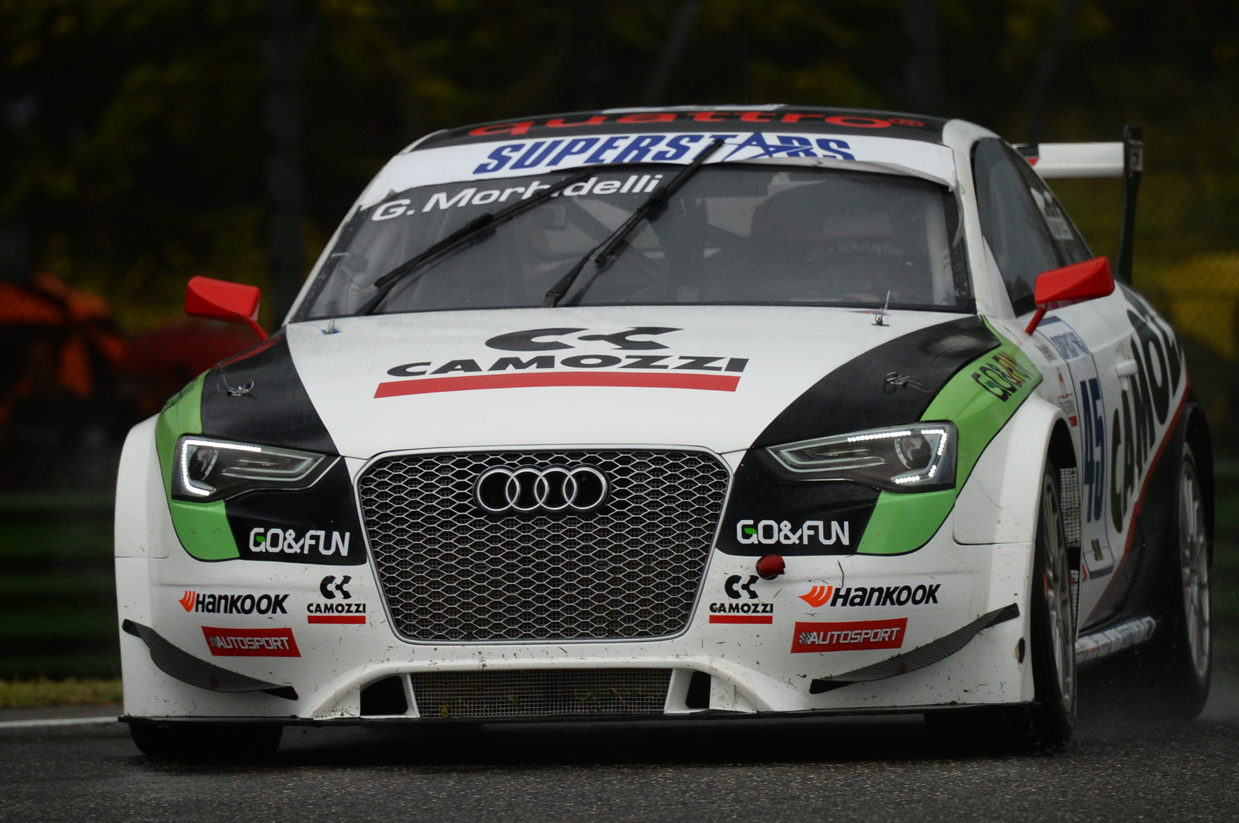 Se sotto il sole di ieri erano state le Mercedes C63 AMG a dominare la scena, con la pole position di Luigi Ferrara (R.R.T.) seguito da Vitantonio Liuzzi e Thomas Biagi (entrambi Romeo Ferraris Mercedes-AMG) ed il poker completato da Andrea Bacci (Caal Racing), oggi la pioggia ha invece favorito la rimonta dell’Audi RS5 di Gianni Morbidelli (Audi Sport Italia). Il pesarese, in lotta per il titolo con Biagi, ha infatti conquistato la vittoria di Gara 2, dopo aver ottenuto il secondo posto nella gara della mattina alle spalle di Liuzzi, balzando al comando della graduatoria con 212 punti.