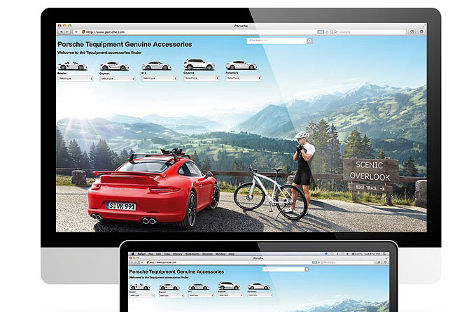 Il programma Porsche Tequipment per la personalizzazione dei modelli dopo l’acquisto offre una varietà di opzioni che spaziano dai pacchetti SportDesign ai kit di potenziamento e includono anche accessori classici come i kit ruote, i prodotti per la cura della vettura e i seggiolini per bambini. Grazie al “Finder accessori Tequipment” oltre 300 opzioni sono presentate in modo chiaro, suddivise per serie e modello. È possibile salvare le opzioni che interessano nel “Finder accessori Tequipment” e inviarle al Centro Porsche più vicino in forma di una lista di preferenze. Il Centro Porsche, come di consueto, si occuperà di tutto il processo relativo all’ordine e di tutti gli altri servizi eventualmente richiest