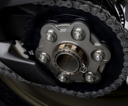 Al motore Superquadro, già dotato di valvole di aspirazione e bielle in titanio, sono state aggiunte valvole di scarico in titanio e, per la prima volta su un motore stradale Ducati, pistoni con 2 segmenti. Questi pistoni sono prerogativa di motori da corsa: il design a mantello corto e l’adozione di soli 2 segmenti (primo segmento e segmento raschiaolio), consentono di ridurre le masse in gioco e gli attriti. Sul fronte delle performance, la camera di combustione è stata ridefinita in base agli sviluppi SBK con un nuovo cielo pistone che consente un notevole aumento del rapporto di compressione. A questo si aggiunge un albero motore estremamente leggero, equilibrato grazie a pastiglie in tungsteno collocate sui contrappesi. Le novità introdotte determinano un’incredibile erogazione di potenza: la moto esce dalla linea di produzione con oltre 200CV.