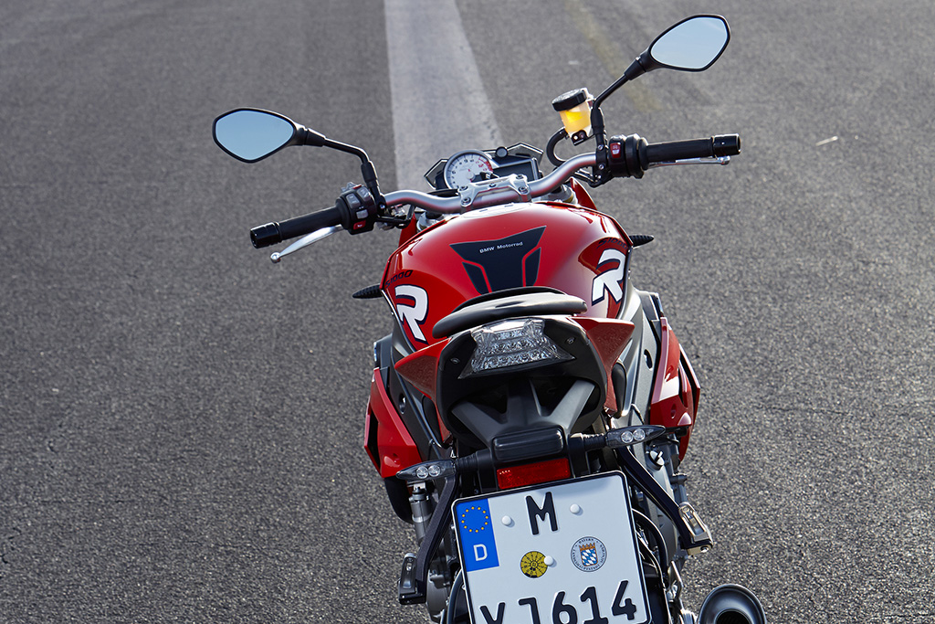 Le qualità della nuova S 1000 R come motocicletta Roadster dalla performance dinamica si riflettono anche nel design. Fedeli al principio “tail up – nose down”, la S 1000 R mostra con il muso basso e la coda che punta verso l’alto la propria dinamica offensiva. Analogamente alla “RR”, già a prima vista anche la S 1000 R si distingue con il proprio volto dalla massa.