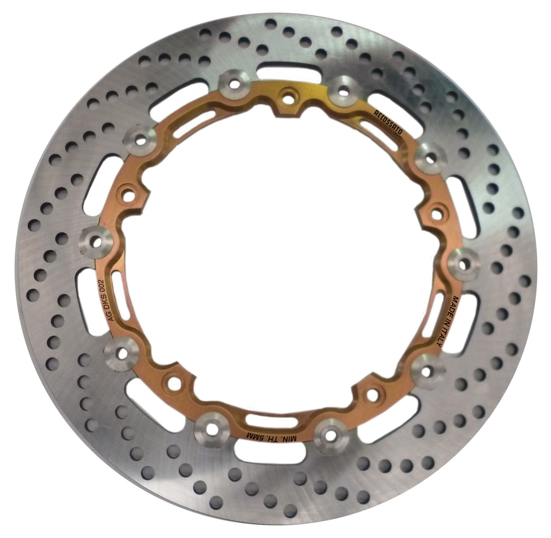 – linea DKS, sono realizzati dal reparto racing della Accossato per rispondere a specifiche esigenze maturate durante la lunga esperienza dell’Azienda in pista, con i dischi flottanti con fascia in alluminio, le cui robuste pareti sono in grado di dissipare con estrema facilità l’alta temperatura raggiunta, la campana è in lega leggera realizzata sempre con controllo numerico ed è disponibile in varie anodizzazioni;
