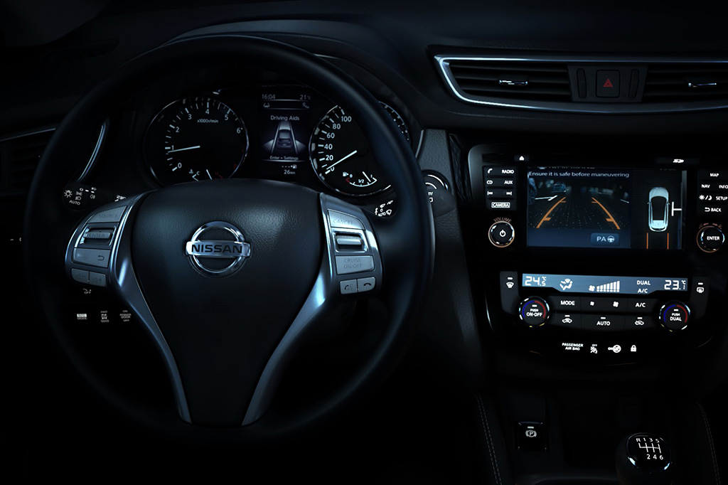La Qashqai è un chiaro esempio di come il Nissan Park Assist può funzionare: bastano solo 80cm in più rispetto alla lunghezza massima del corpo vettura per inserire la vettura nello spazio desiderato con i sensori parcheggi anteriori e posteriori che emettono segnali acustici e visivi sul quadro strumento.