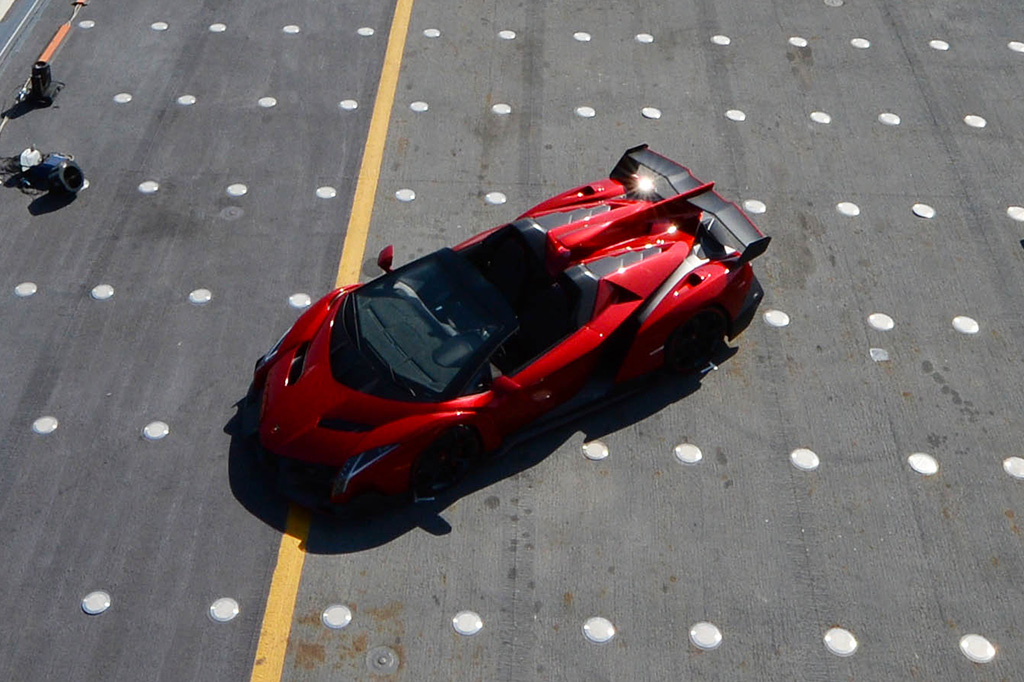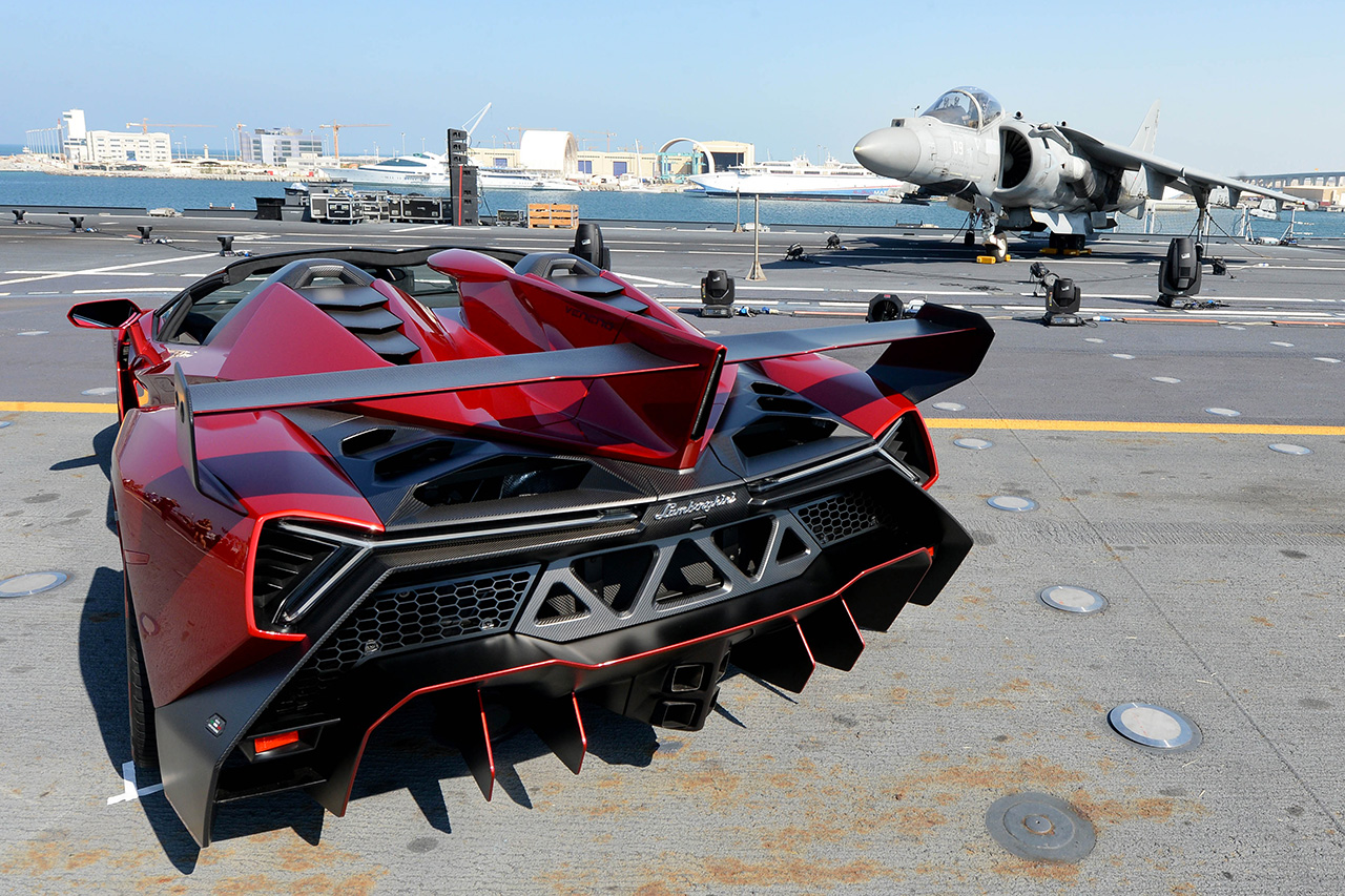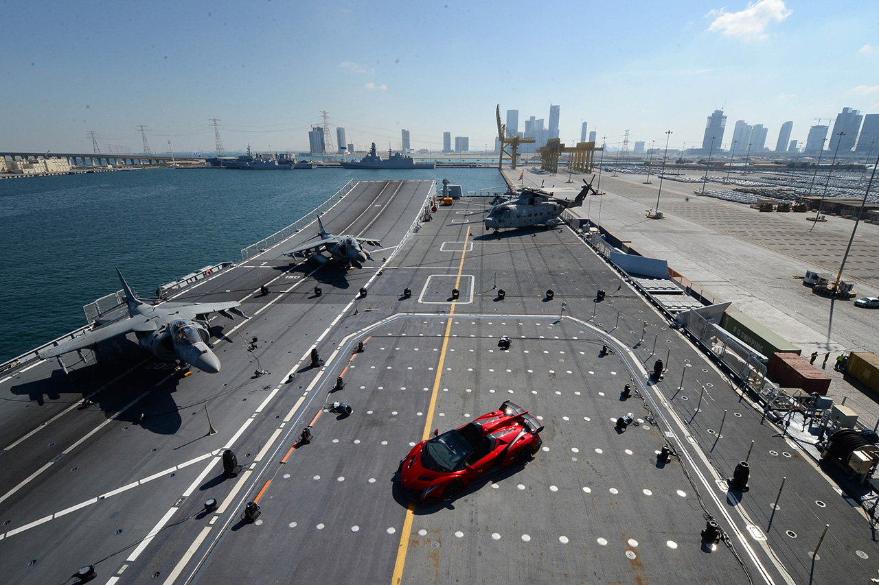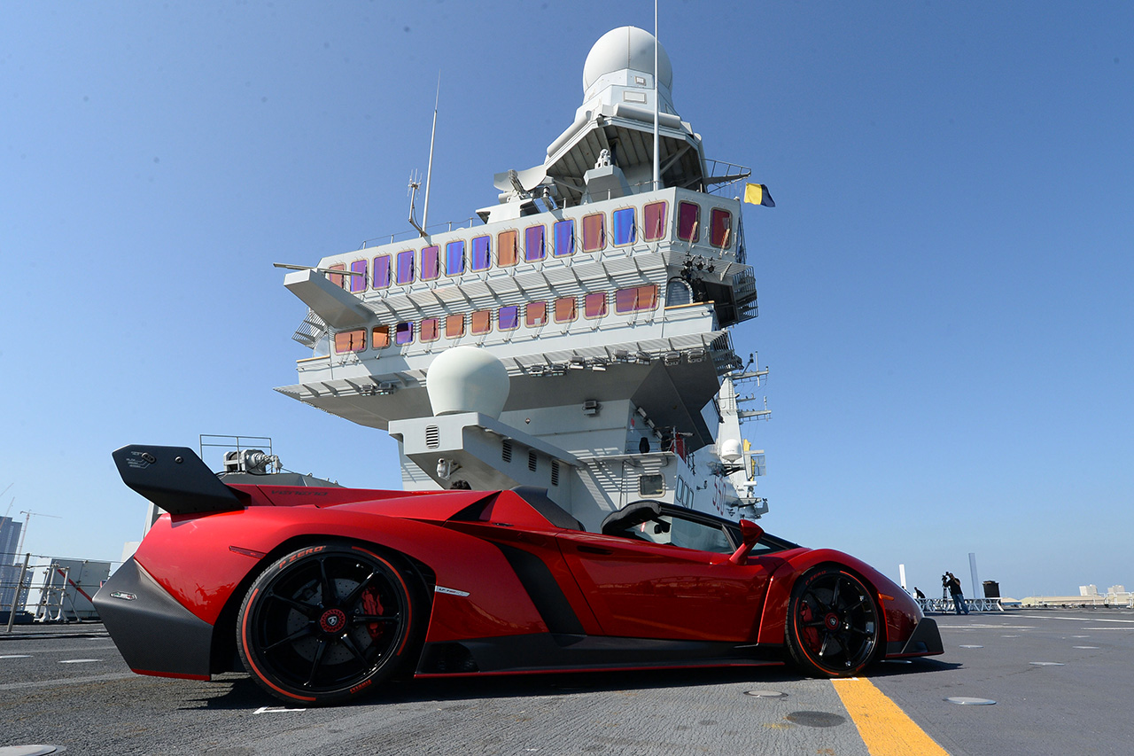 Lamborghini Veneno Roadster si svela al grande pubblico a bordo della portaerei Italiana Cavour.