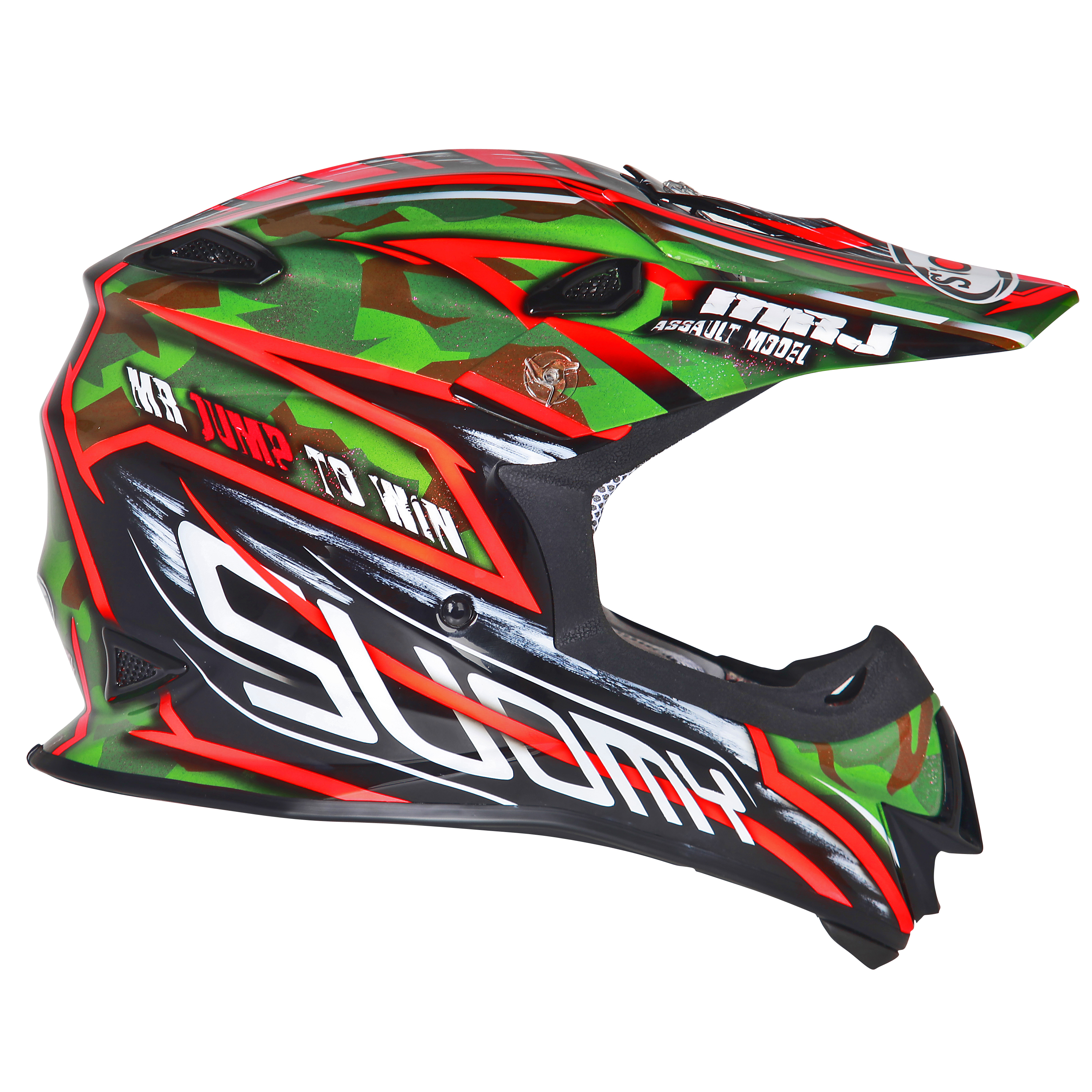Bello e leggero, tecnico e modaiolo, il Suomy Mr. Jump con un peso di soli 999 grammi e la sua grafica camouflage porta con se tutta l’aggressività e la grinta di un vero pilota di cross.