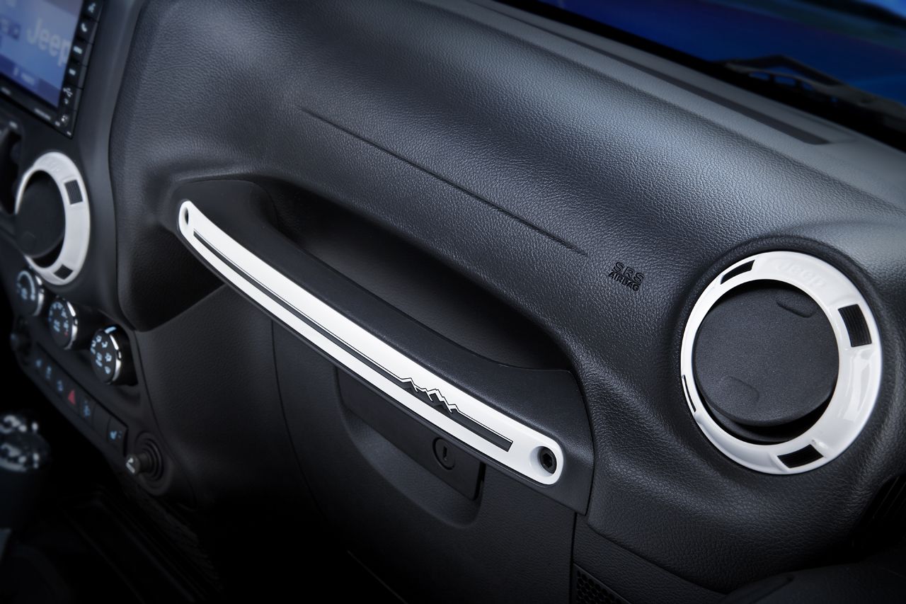 Realizzata sulla base della versione Sahara di Jeep Wrangler, la nuova serie speciale presenta esternamente un allestimento unico caratterizzato da alcuni elementi specifici come la nuova griglia a sette feritoie di colore nero lucido, il copriruota di scorta rigido in tinta carrozzeria, il cofano motore rialzato, l’hard top modulare Freedom Top in tinta con la carrozzeria e i cerchi in lega da 18″ Gloss Black. Completano la caratterizzazione esterna la decalcomania con il profilo a tre colori delle montagne, applicata lateralmente sul cofano e lo sportello carburante nero firmato Mopar.