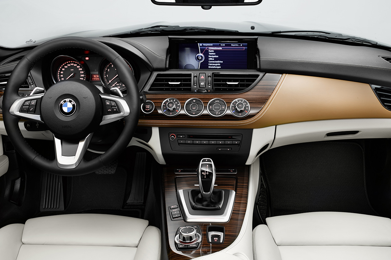 La pelle regna sovrana in un abitacolo che seppur minimal è un trionfo di design e tecnologia, con l’impianto multimediale che trionfa al centro, un cuore elettronico che comanda ogni più piccolo particolare a bordo della BMW Z4 Pure Fashion Design.
