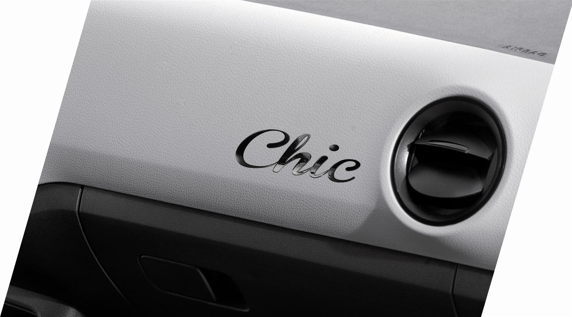Dotata di accessori che la caratterizzano come una city car lussuosa, la Seat Mii Chic sarà equipaggiata con fari fendinebbia, pomello e leva del cambio in pelle, cerchi in lega da 14″, inserti bianco lucido per cruscotto e volante.
