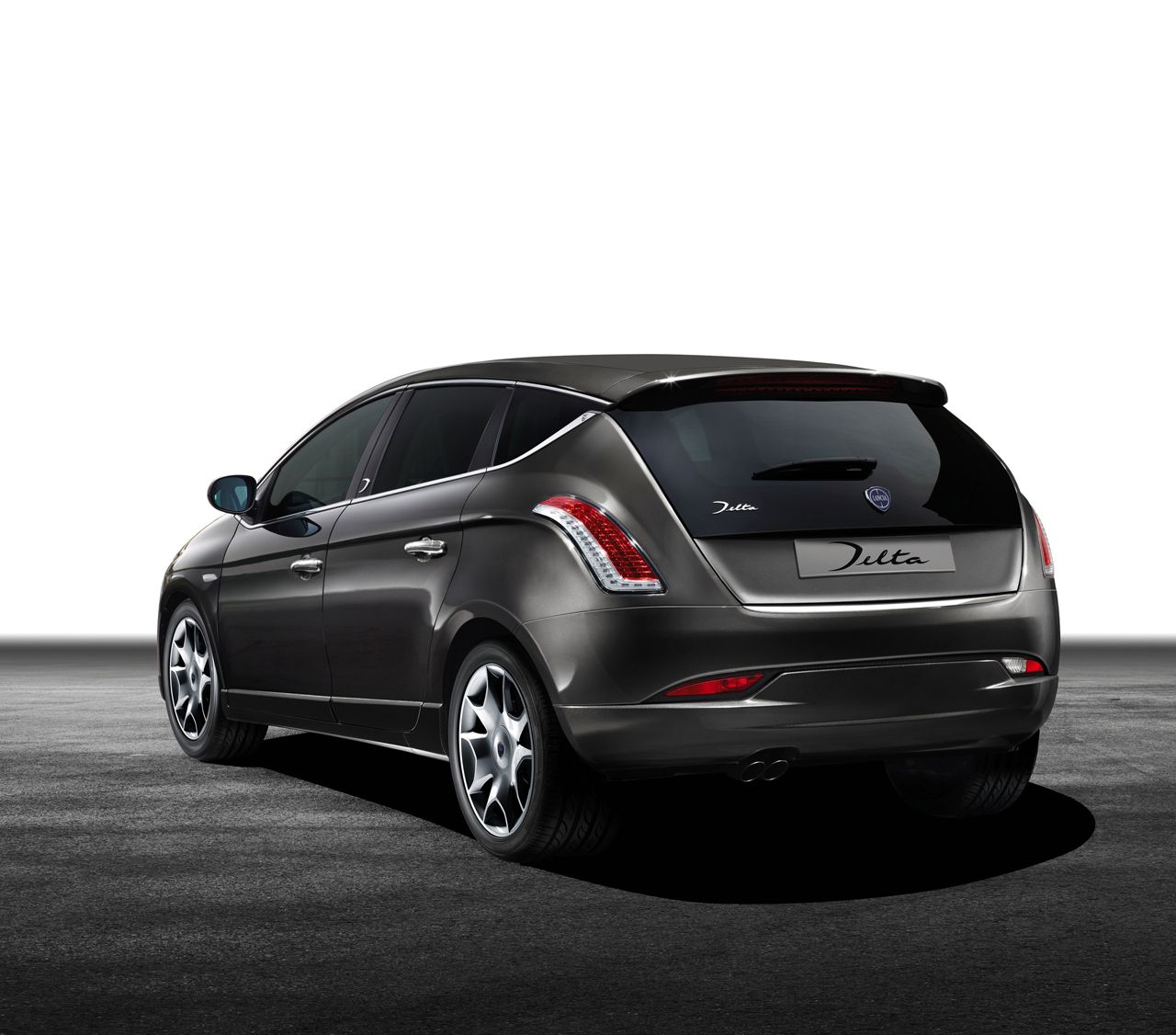 Esternamente la Lancia Delta MY 2014 si caratterizza per l’adozione di minigonne e paraurti verniciati nella stessa tinta della carrozzeria, per il doppio terminale di scarico cromato e per una nuova colorazione della carrozzeria, grigio antracite.