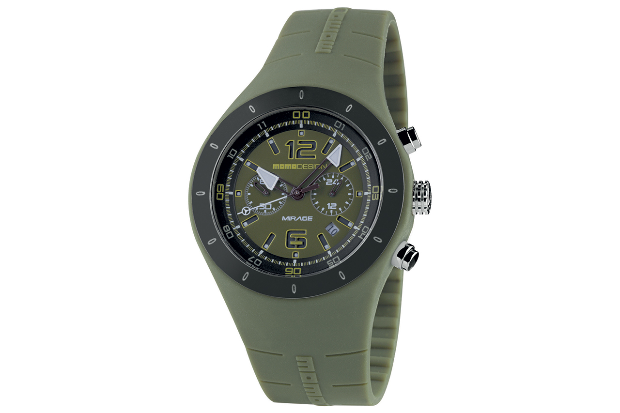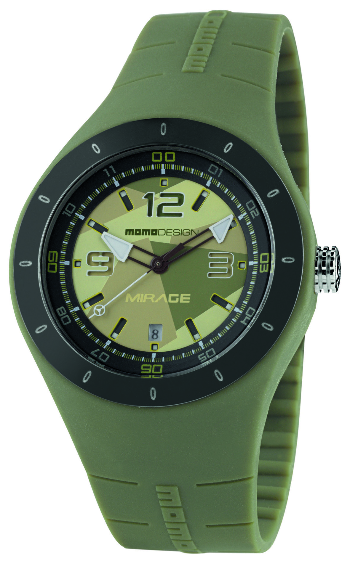 Leggero e confortevole l’orologio MOMODESIGN Mirage è proposto nelle versioni “solo tempo 3 sfere” e “Crono”, entrambi disponibili in colori di tendenza, verde militare, grigio avio e bianco off white.