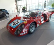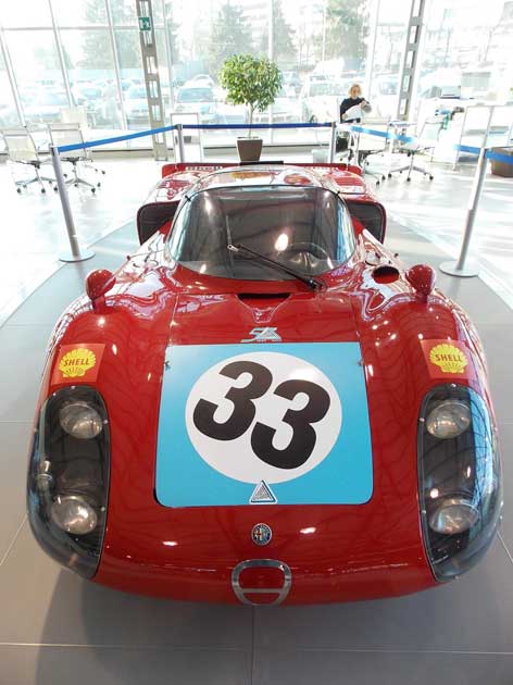 Il modello Alfa Romeo 33 2 litri Daytona debutta nel 1967 in corsa a Fléron e vince con Teodoro Zeccoli, noto pilota-collaudatore ufficiale dell’Autodelta. Nel 1968 la 33/2 litri si aggiudica le prime posizioni alla «Daytona» (1°-2°-3°), alla «24 ore di Le Mans» (1°-2°-3° posto) e alla «500 km di Imola», mentre si classifica seconda assoluta nella «Targa Florio». Nel 1969 vince la Targa Florio, la «1000 km del Nuerburgring» e la «1000 km di Brasilia». Dalla versione da corsa deriva l’Alfa Romeo 33 Stradale che ha ottenuto un grande successo di pubblico e di vendite.