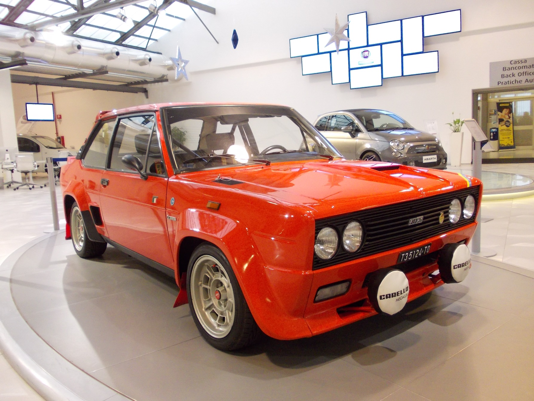 La Fiat 131 Abarth nasce nel 1976 e ne vengono realizzati 400 esemplari per omologare la versione rally. Nelle mani dei piloti Walter Röhrl, Markku Alen, Timo Salonen, Attilio Bettega e Sandro Munari si aggiudica due titoli mondiali al Campionato Rally del 1978 e 1980 e tre titoli mondiali Costruttori nel 1977-78 e 1980. La vettura esposta al Mirafiori Motor Village ha partecipato ai rally storici di Sanremo, Montecarlo e Isola d’Elba.
