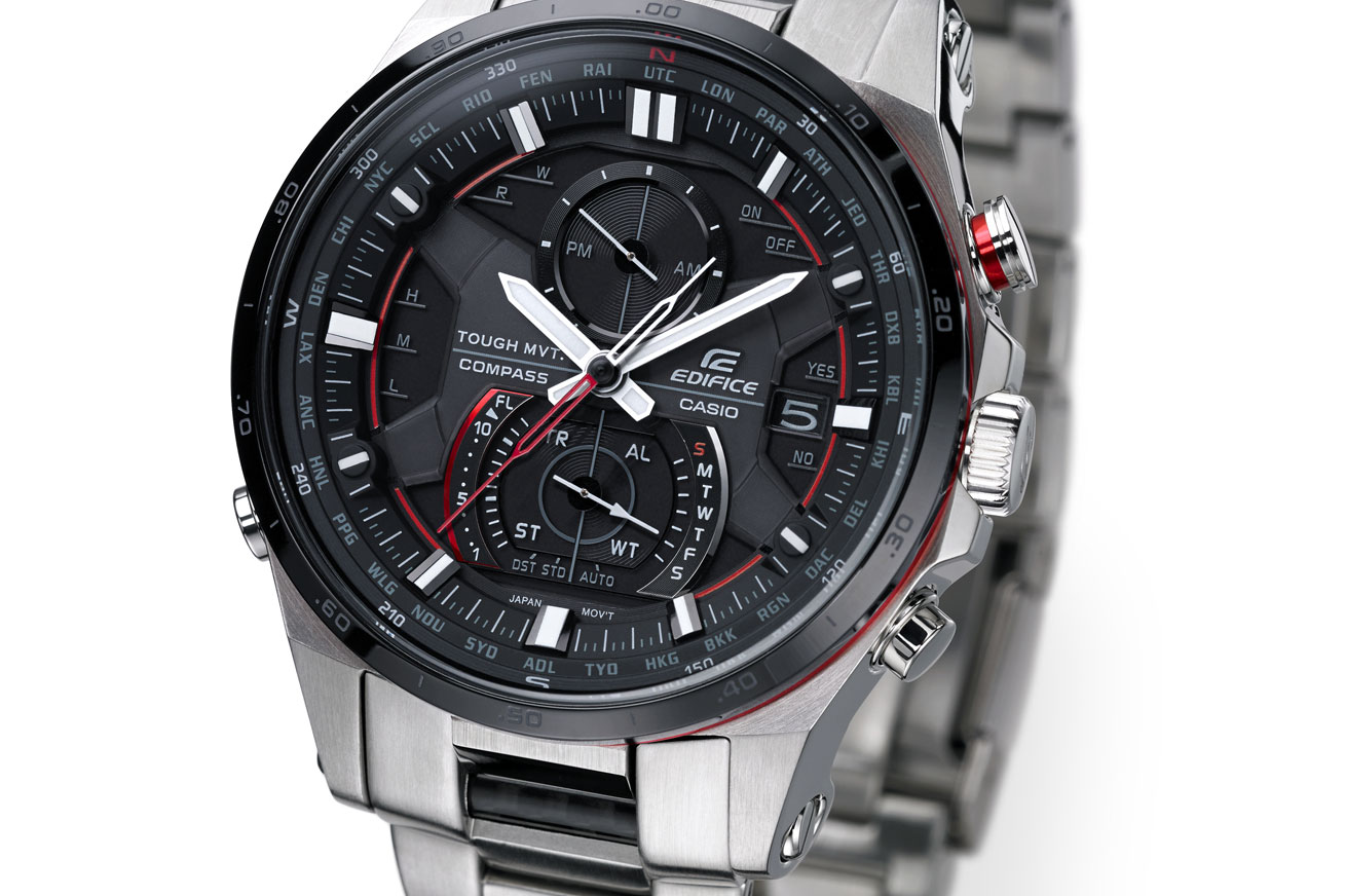 E’ inoltre dotato di ricarica solare, radio controllo Multiband 6 e correzione automatica della posizione delle lancette. EQW-A1200 si avvale anche di una nuova configurazione resistente alle vibrazioni e sviluppata da Casio a seguito di una visita al reparto R&D, presso la scuderia Infiniti Red Bull Racing. Il nuovo EDIFICE, infatti, è ricoperto di Alpha Gel, un gel realizzato in silicio e altri materiali estremamente resistente alle vibrazioni che riduce le oscillazioni trasmesse dall’avvitatore durante la sostituzione degli pneumatici e che impattava sul lavoro dei meccanici. Inoltre, il raccordo posizionato tra la cassa e il bracciale è stato rinforzato con un tubo in carbonio.