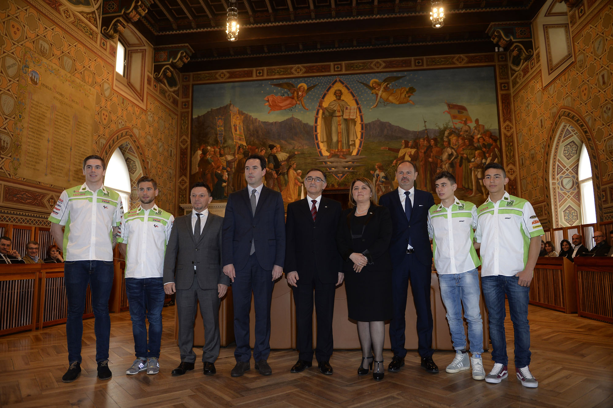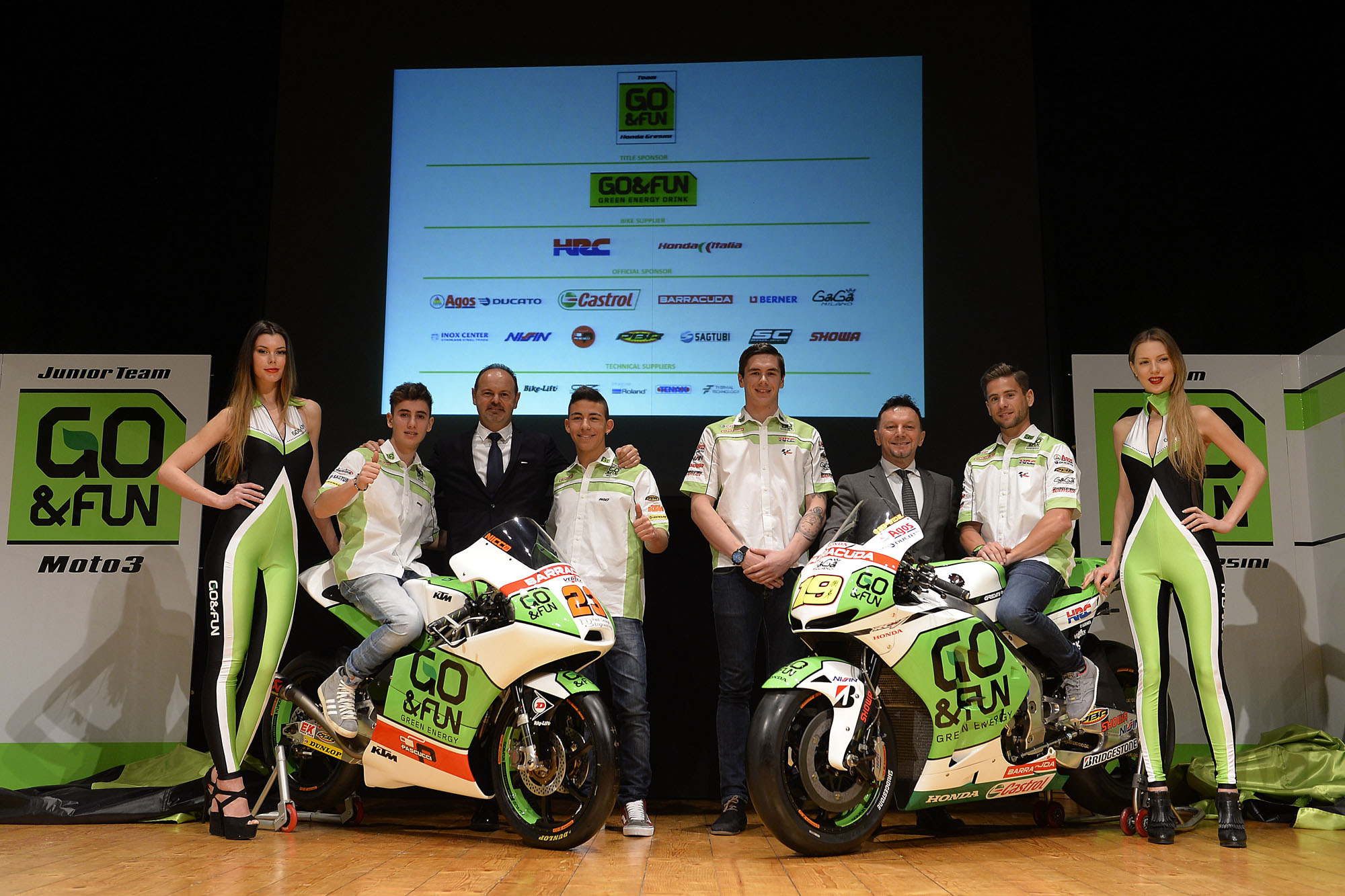 Team GO&Fun Honda Gresini 2014 è stato presentato nel teatro Titanio di San Marino, un evento splendido che ha visto protagonisti la squadra, i piloti e le moto che parteciperanno al Campionato del Mondo della MotoGP 2014.