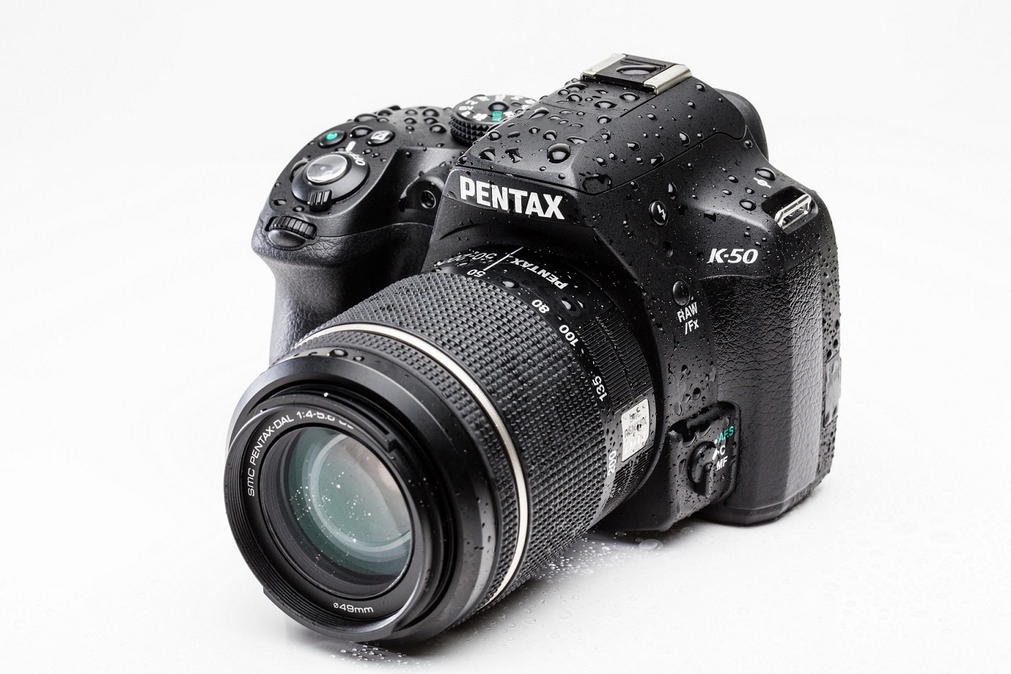 Colorata e trendy la nuova Pentax K-50 sfodera prestazioni di alto livello grazie ad un corpo che tiene lontano acqua e polvere: sono ben 81 le guarnizioni presenti sul corpo macchina, una costruzione che la rende ideale per riprese outdoor.