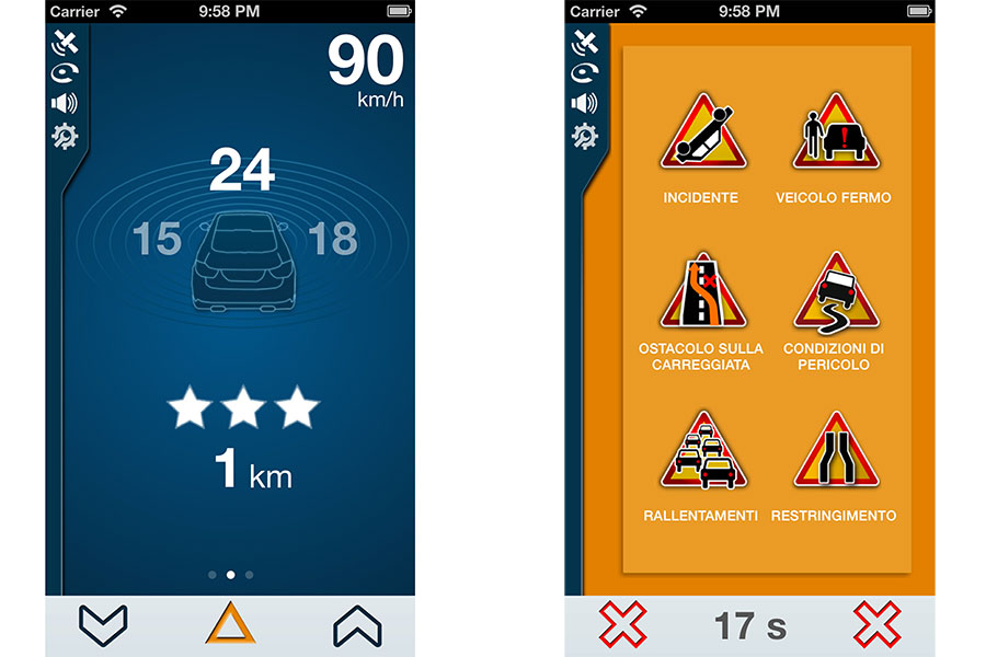 L’app iCoyote7 permette inoltre l’individuazione delle zone a rischio mobile, della presenza di allerte multiple, di veicoli fermi o bloccati in coda, di telecamere ai semafori.