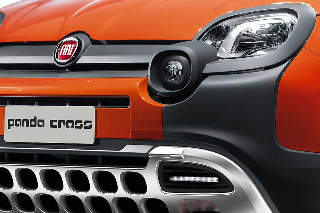 A sottolineare il carattere fuoristradistico della Fiat Panda Cross ci pensano i ganci traino di nuova foggia, in un rosso brillante di immediato riconoscimento, i nuovi fendinebbia di generose dimensioni e il moderno gruppo ottico con luci diurne DRL con tecnologia LED.