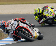 In sella alla bellissima Aprilia RSV4 SBK Marco Melandri ha ottenuto al termine della prima giornata di prove un bel secondo tempo assoluto, con un best lap di 1’31.137, posizionandosi alle spalle di Lowes di soli 37 millesimi di secondo, precedendo Giugliano, Sykes, Rea e Laverty.