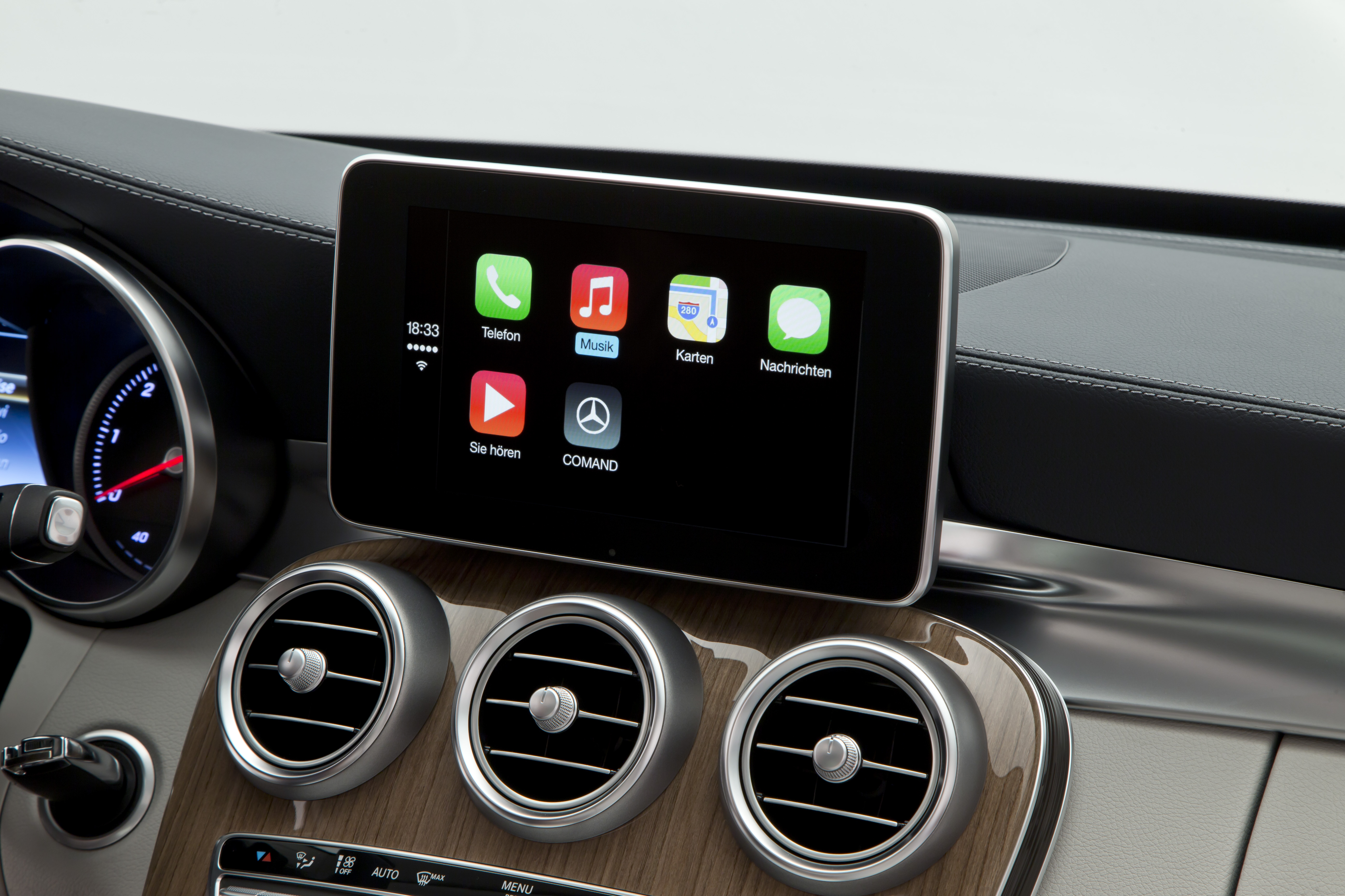 CarPlay è il nuovo sistema di infotainment che Mercedes porta in anteprima sulla sua nuova Classe C.
