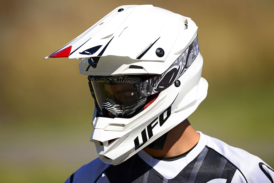 Un design aggressivo e aerodinamico quello del casco Ufo Plast Interceptor che rispecchia anche una grande attenzione al contenimento del peso. La calotta, disponibile in due diverse misure per una calzabilità ottimale, è realizzata con diverse tipologie di tessuti stratificati e incrociati (Carbon, Aramidic, Fiberglass e Polyester Resin) che inseriti in posizioni prestabilite garantiscono la protezione migliore con il minimo peso. Il particolare design della calotta inferiore è stato studiato per ridurre angoli di collisione con il corpo del pilota e per integrarsi perfettamente con i più diffusi neck brace.
