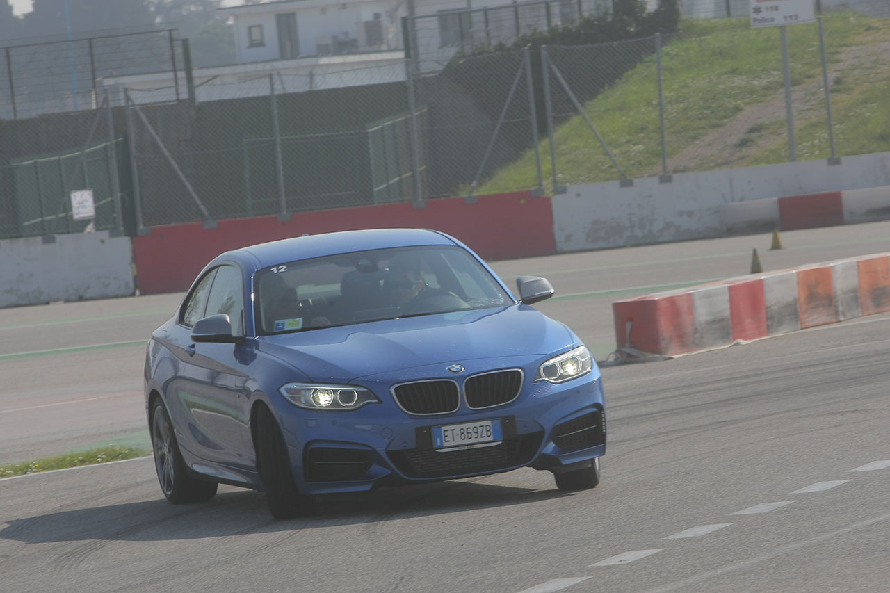 Il nostro intento è di quelli più “guerrieri”, poco importa il tempo sul giro, vogliamo mettere alla frusta la versione attualmente più potente della Bmw Serie 2 Coupè e così il gas è a manetta e le ruote fumano ad ogni curva!
