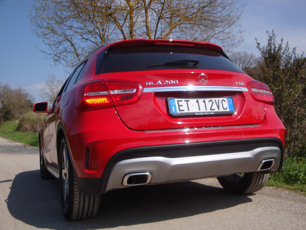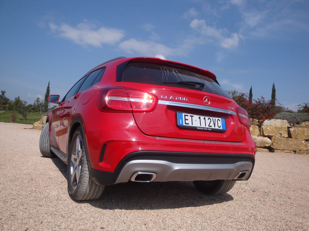 La linea della GLA presenta innegabili somiglianze con quella della Classe A, il che è un bene, considerando il successo della sorella minore, ma a ben vedere il nuovo crossover può vantare una personalità propria grazie ad una maggiore altezza da terra, ad un aspetto più robusto e ad una differente fisionomia della vista posteriore. L’esemplare della nostra prova poi, una Premium dotata del kit estetico AMG poteva sfoggiare cerchi in lega da 18 pollici dal disegno caratteristico, paraurti con feritoie più aggressive e cromature anche sulle protezioni nelle parti basse delle fiancate.