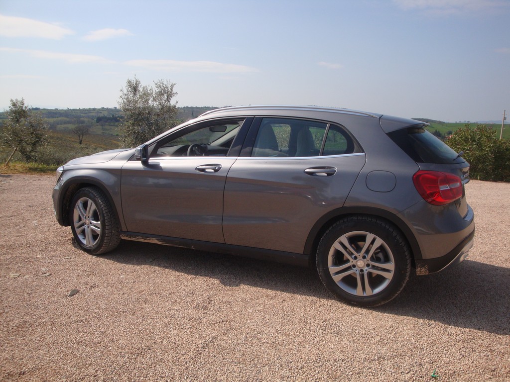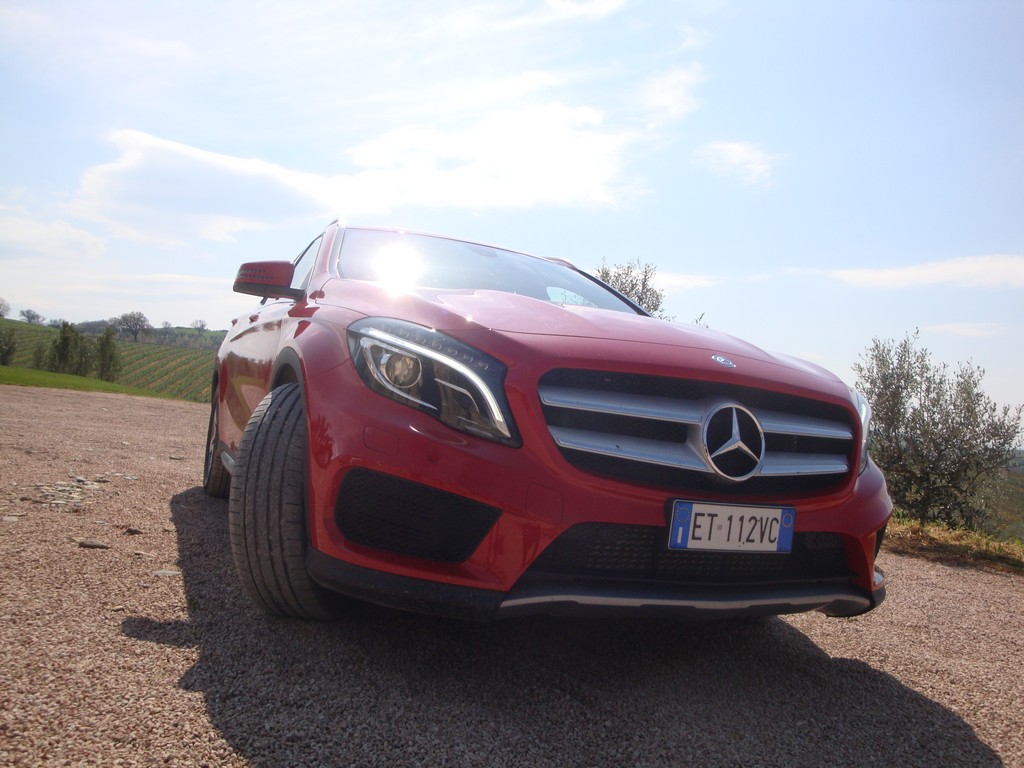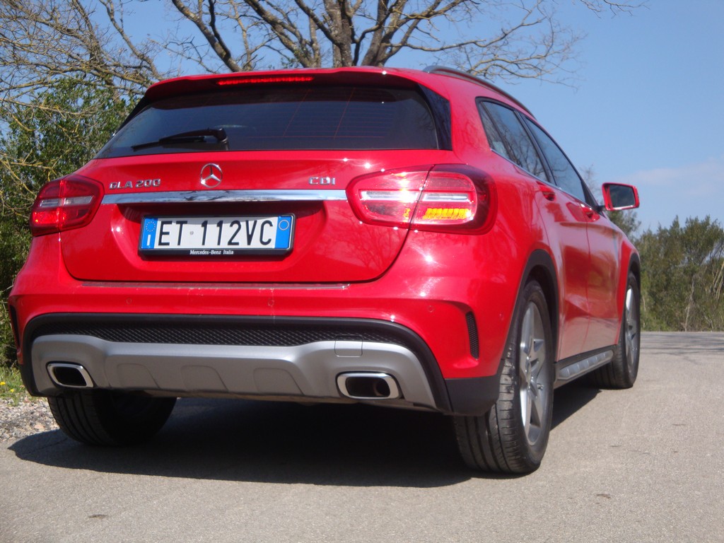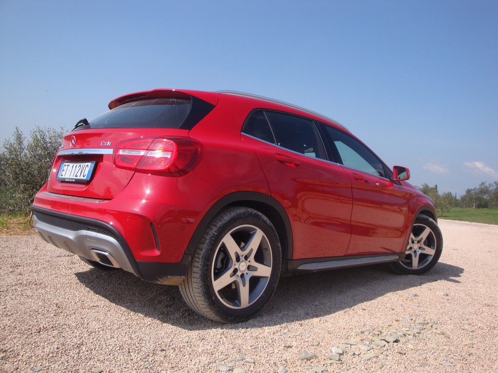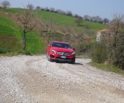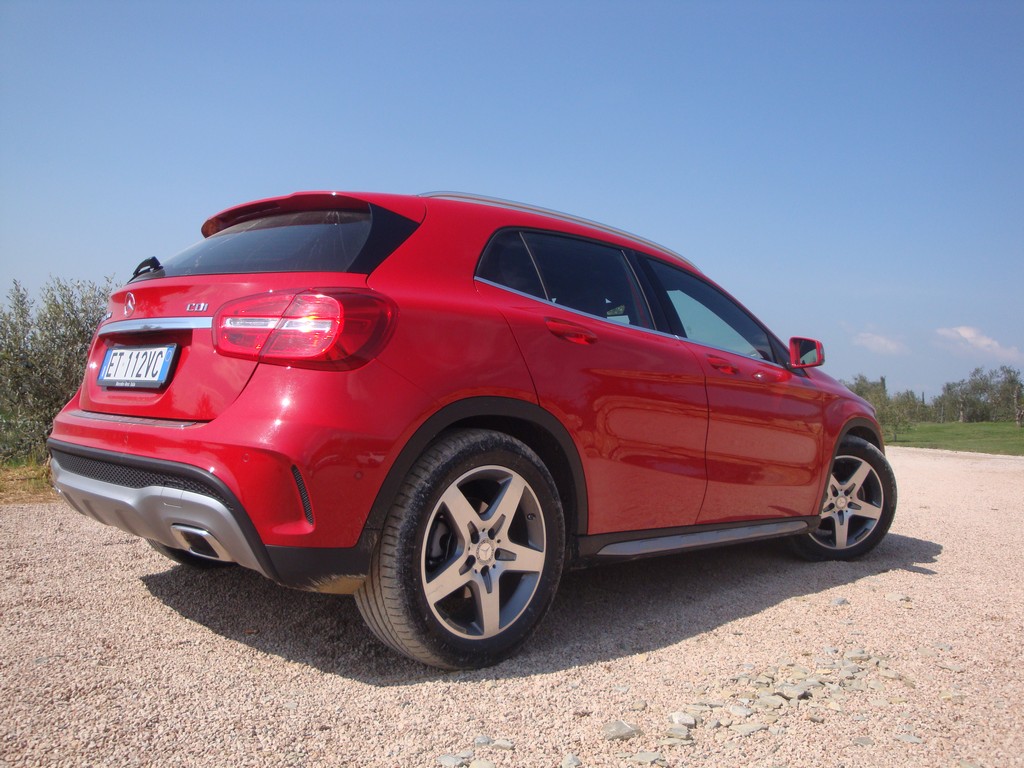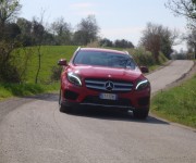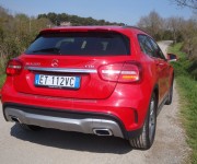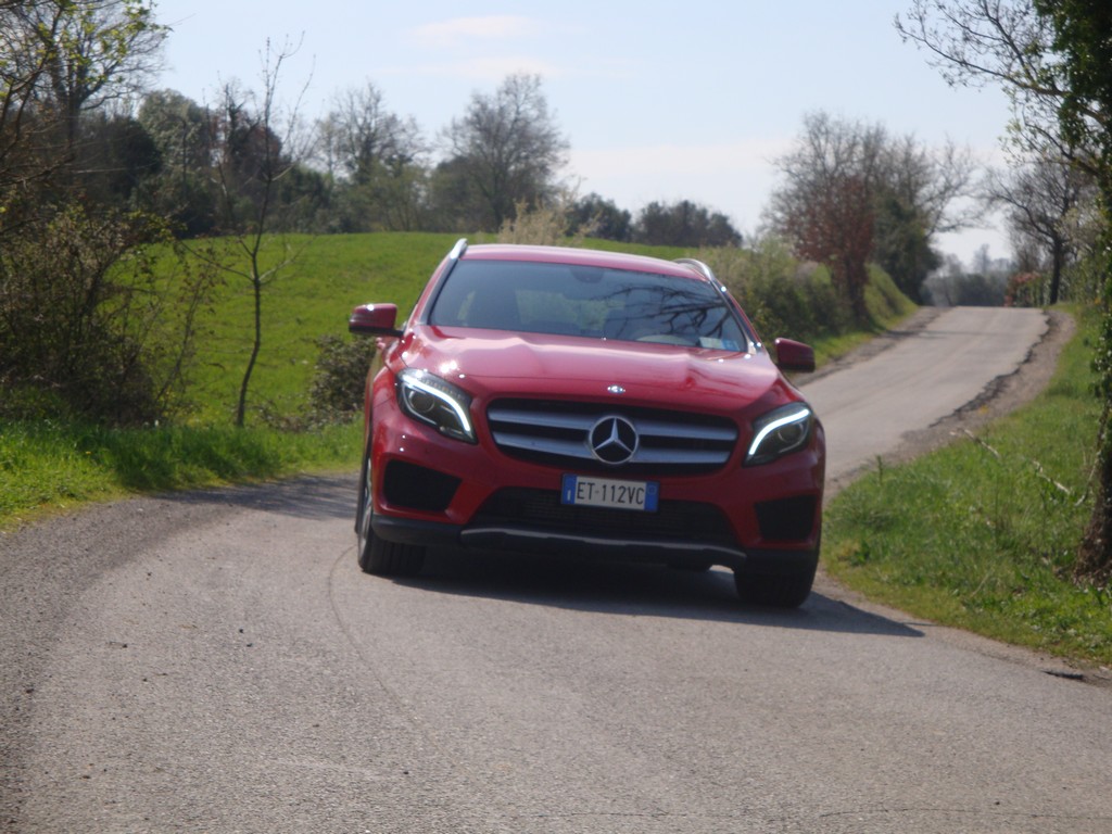 Non fatevi ingannare dall’aspetto da giovane avventuriera, la GLA non è e non vuole essere un fuoristrada, la sua vocazione principale rimane l’asfalto, magari con qualche digressione sullo sterrato leggero dove le versioni 4MATIC possono contare sull’ausilio alla marcia in discesa, denominato DSR (Downhill Speed Regulation). In linea di massima la dinamica ricalca quella della Classe A, con l’auto che tende a rimanere neutra in curva e a seguire le traiettorie impostate dal guidatore senza sbavature, ma nelle curve più impegnative si avverte un maggiore rollio dovuto all’altezza da terra superiore. Silenziosa in autostrada, consente di percorrere molti km senza affaticare il conducente, e con il cambio a doppia frizione 7G-DCT (di serie sulla GLA 250, 220 CDI e per le varianti 4 MATIC) anche le code possono essere affrontate col sorriso. Valida anche la trasmissione manuale a 6 rapporti che vanta innesti secchi e precisi e regala un certo coinvolgimento durante la guida. Sullo sterrato l’auto si lascia condurre per poi scivolare sulle 4 ruote quando sopraggiunge il limite dell’aderenza, ma non mette mai in apprensione grazie a delle reazioni graduali e composte. Grazie all’Attention Assist ed al Collision Prevention Assist di serie inoltre, l’auto avvisa il pilota quando è il caso di fare una pausa, magari per prendere un caffè, lo mette in guardia con segnalazioni visive e acustiche su eventuali pericoli di collisione e genera la massima potenza di rallentamento per evitare gli impatti. Ma non è tutto, in abbinamento al Distronic Plus, il radar che mantiene la distanza di sicurezza con gli altri veicoli, il Collision Prevention Assist diventa Plus e può frenare automaticamente da una velocità di 200 km/h per ridurre le conseguenze di un impatto o evitarlo autonomamente fino a 20 km/h.