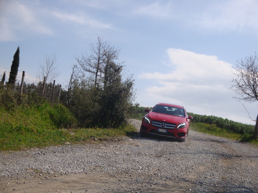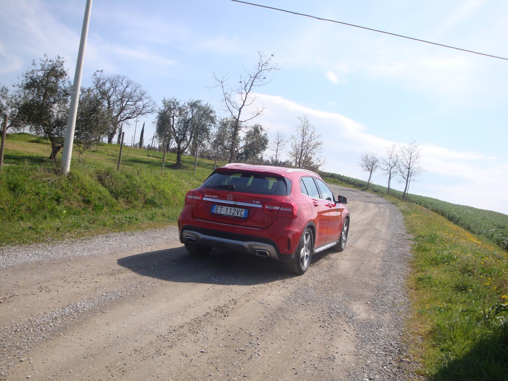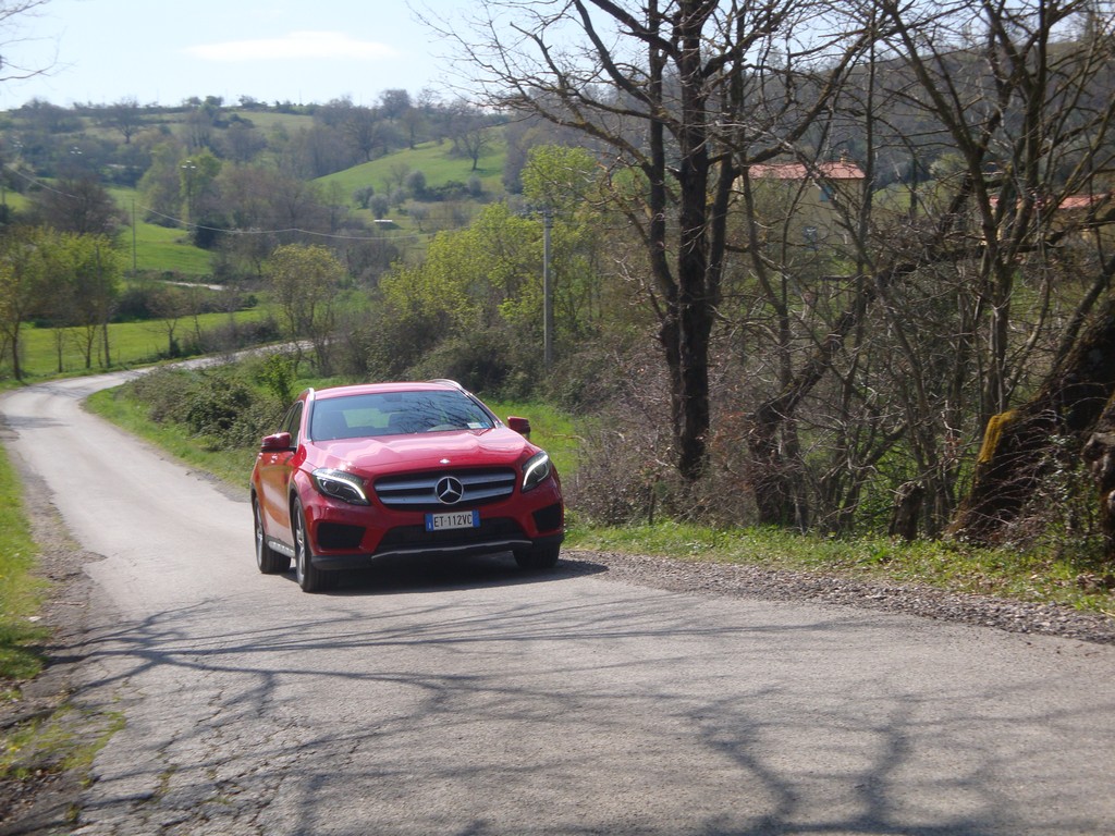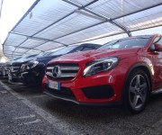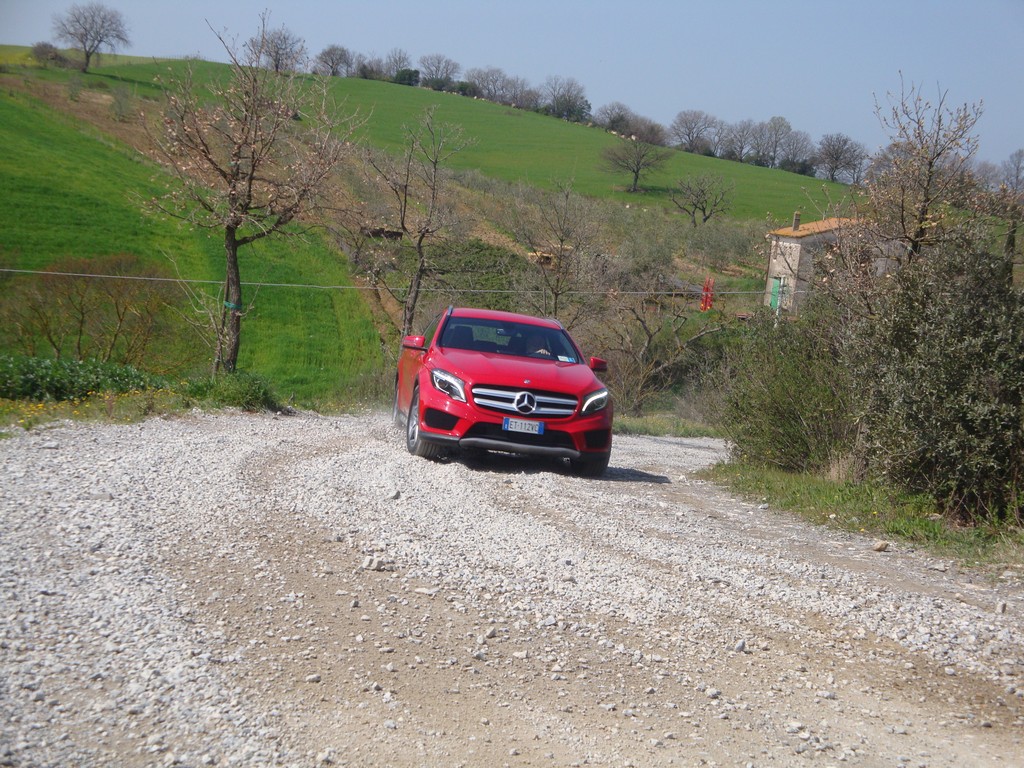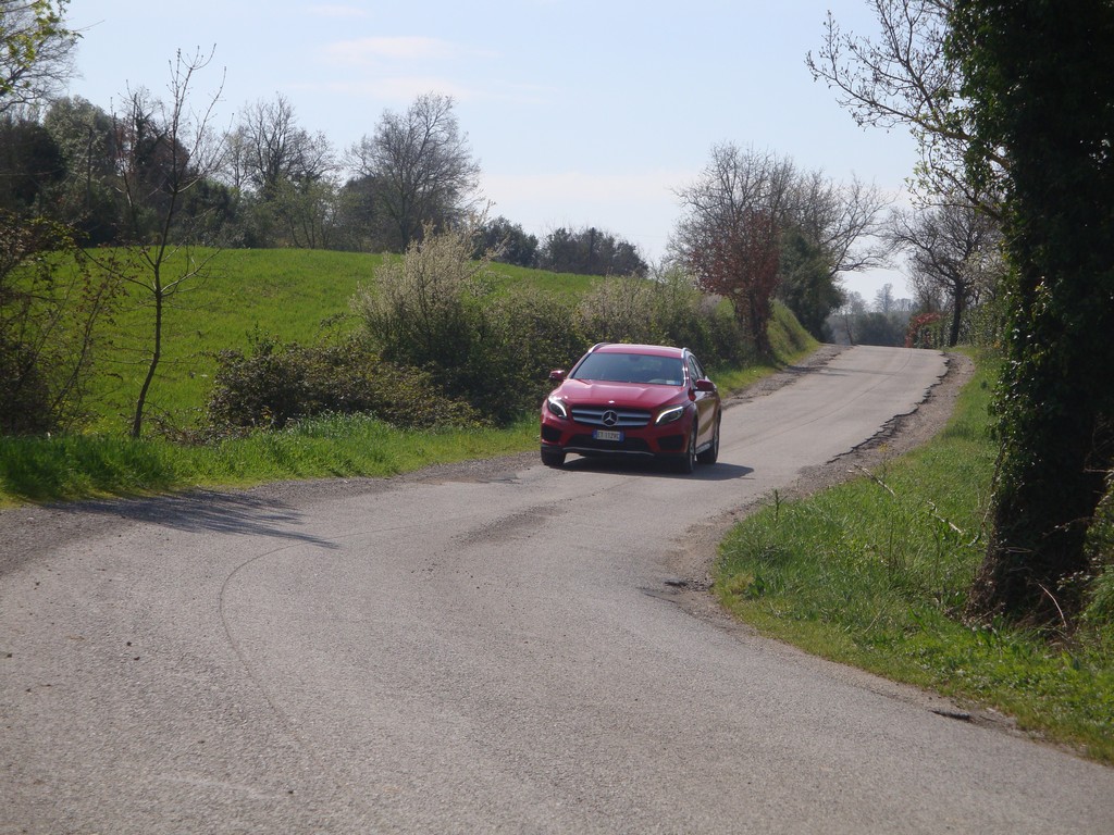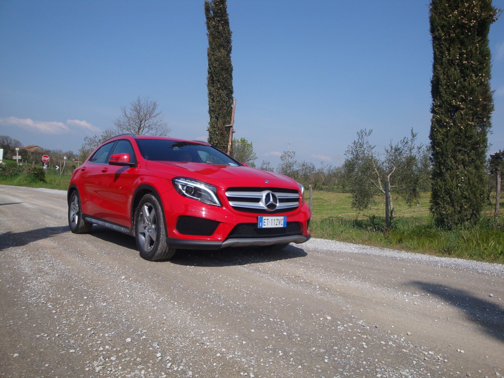 Non fatevi ingannare dall’aspetto da giovane avventuriera, la GLA non è e non vuole essere un fuoristrada, la sua vocazione principale rimane l’asfalto, magari con qualche digressione sullo sterrato leggero dove le versioni 4MATIC possono contare sull’ausilio alla marcia in discesa, denominato DSR (Downhill Speed Regulation). In linea di massima la dinamica ricalca quella della Classe A, con l’auto che tende a rimanere neutra in curva e a seguire le traiettorie impostate dal guidatore senza sbavature, ma nelle curve più impegnative si avverte un maggiore rollio dovuto all’altezza da terra superiore. Silenziosa in autostrada, consente di percorrere molti km senza affaticare il conducente, e con il cambio a doppia frizione 7G-DCT (di serie sulla GLA 250, 220 CDI e per le varianti 4 MATIC) anche le code possono essere affrontate col sorriso. Valida anche la trasmissione manuale a 6 rapporti che vanta innesti secchi e precisi e regala un certo coinvolgimento durante la guida. Sullo sterrato l’auto si lascia condurre per poi scivolare sulle 4 ruote quando sopraggiunge il limite dell’aderenza, ma non mette mai in apprensione grazie a delle reazioni graduali e composte. Grazie all’Attention Assist ed al Collision Prevention Assist di serie inoltre, l’auto avvisa il pilota quando è il caso di fare una pausa, magari per prendere un caffè, lo mette in guardia con segnalazioni visive e acustiche su eventuali pericoli di collisione e genera la massima potenza di rallentamento per evitare gli impatti. Ma non è tutto, in abbinamento al Distronic Plus, il radar che mantiene la distanza di sicurezza con gli altri veicoli, il Collision Prevention Assist diventa Plus e può frenare automaticamente da una velocità di 200 km/h per ridurre le conseguenze di un impatto o evitarlo autonomamente fino a 20 km/h.