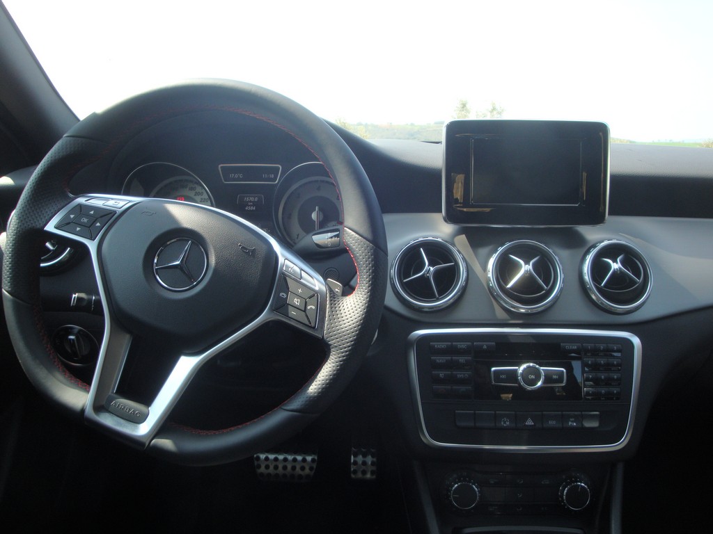 L’abitacolo della GLA ripropone la linea della plancia che abbiamo apprezzato sulla Classe A e la CLA, la novità più eclatante è che la visuale è nettamente migliorata per via dell’altezza da terra superiore e adesso si percepiscono meglio gli ingombri della parte anteriore della carrozzeria nelle svolte in città. Per il resto, ritroviamo il sistema multimediale con tanto di tablet posizionato al centro della plancia e gestito attraverso la manopola posizionata sul tunnel centrale, le prese d’aria di grandi dimensioni e di notevole effetto scenico, e i sedili anteriori con poggiatesta integrato (a partire dalla versione Sport). Con una lunghezza inferiore ai 4,5 m lo spazio per 4 passeggeri è più che sufficiente, ma nei posti posteriori si avverte la mancanza delle bocchette d’areazione. Ampio e comodo il bagagliaio che vanta una volumetria di 421 litri ampliabile fino a 1235 litri.