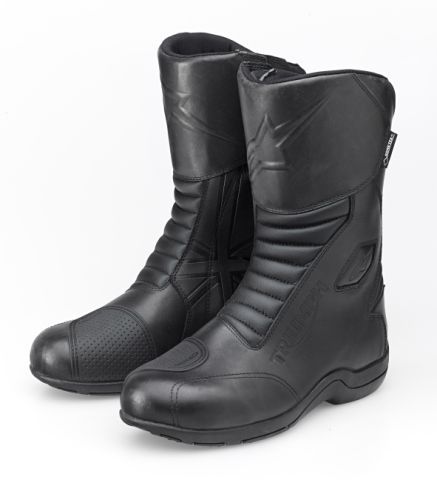 Questi stivali dal design completamente rivisitato e realizzati in pelle hanno membrana Gore Tex waterproof e traspirante, protezioni interne per la cresta tibiale, l’alluce e il tallone, disco a doppia intensità per tutelare il tallone eprotezione per il pedale della frizione. Aree flessibili in microfibra e suola interna profilata con supporto garantiscono controllo e adattabilità.
