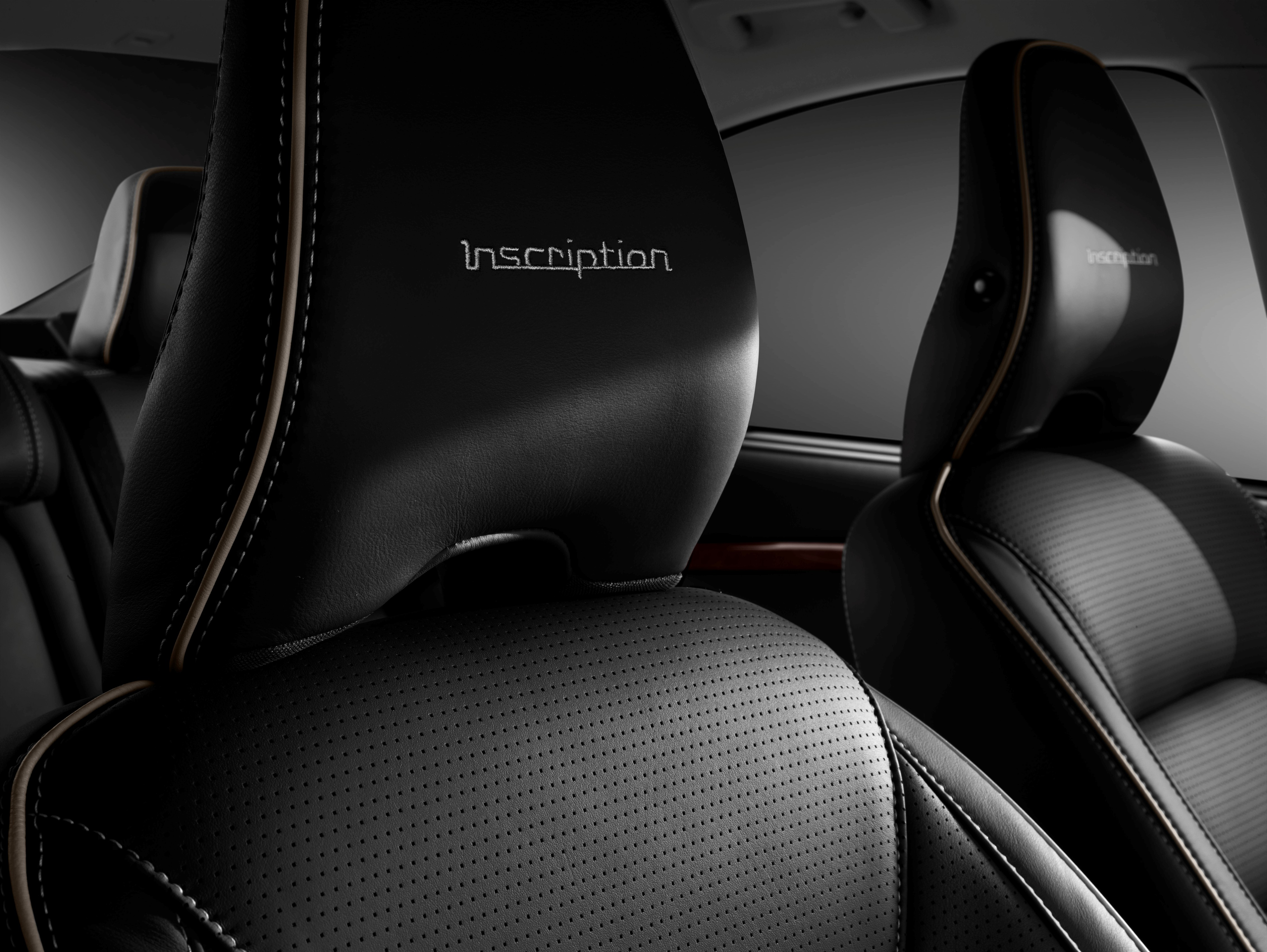 Il pacchetto Inscription include rivestimenti in morbida pelle Inscription Soft Leather in diverse tonalità uniche, un raffinato quadro strumenti rivestito in pelle, eleganti inserti decorativi, rivestimento in pelle morbida per le superfici più estese quali il retro dei sedili, il bracciolo centrale e i poggiatesta – su cui campeggia inoltre il logo Inscription ricamato –, e tappetini esclusivi.