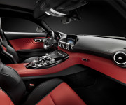 A dominare il cockpit della GT l’evoluzione stilistica del tema di design tipico delle sportive Mercedes-Benz, ispirato al mondo dell’aeronautica. Lo sviluppo spiccatamente orizzontale delle linee della plancia, a creare una sorta di imponente ala, viene sottolineato dalla presenza di quattro bocchette di ventilazione centrali e due singole alle relative estremità. Altrettanto dinamica e caratteristica la consolle centrale: complice la forma ispirata ad una presa d’aria NACA ed i materiali utilizzati, nasce direttamente dal Motorsport. A perfezionare il design contribuiscono i comandi della AMG Drive Unit, che richiamano alla mente la disposizione dei cilindri di un motore V8 per regalare ancora più imponenza e carattere alla consolle centrale.