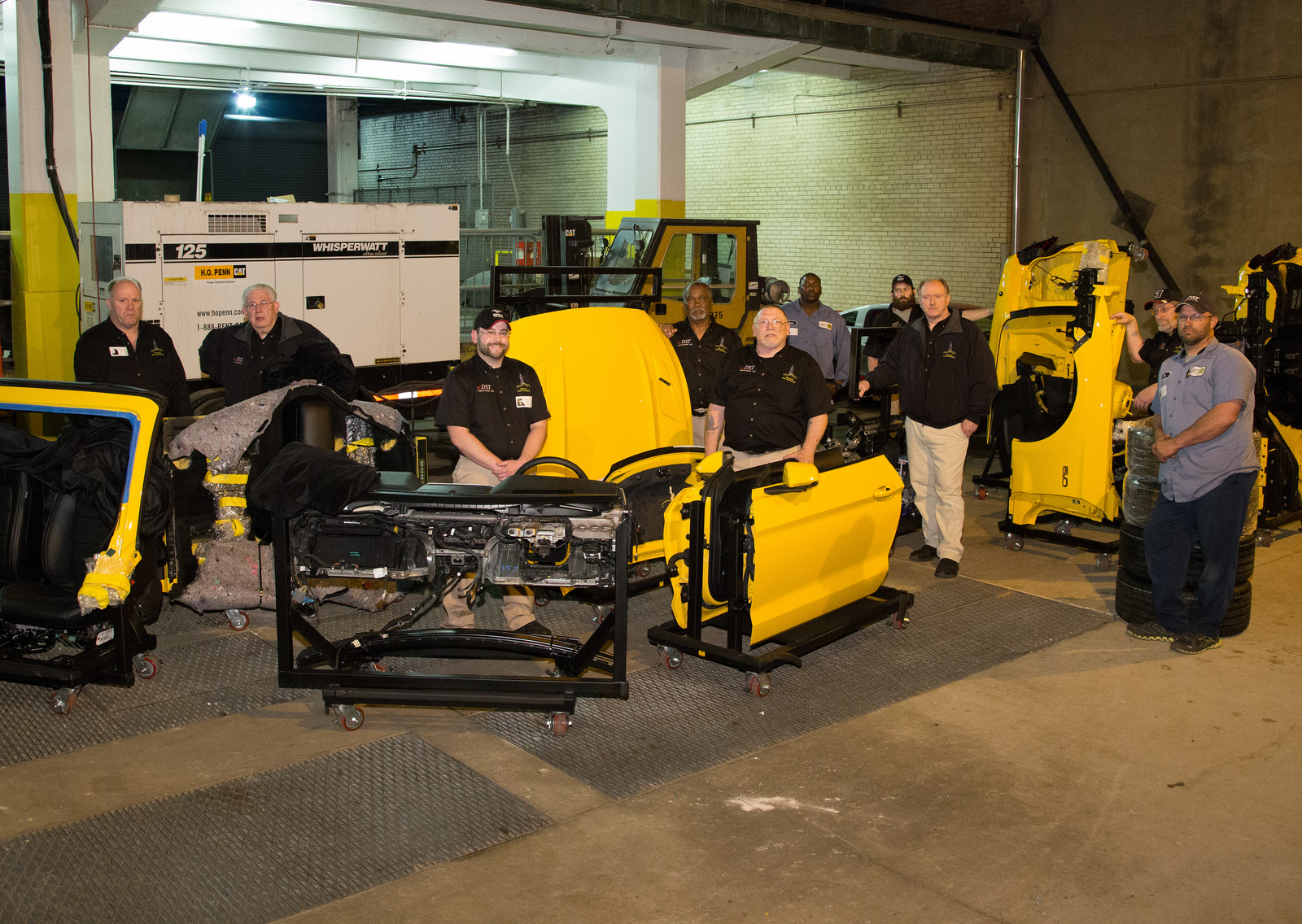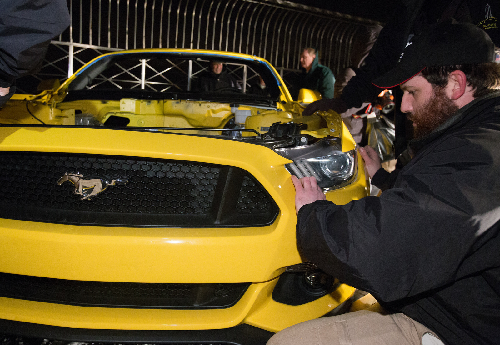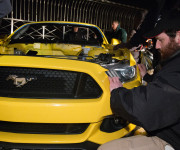 Per riuscire nell’impresa, Ford ha donato al team 2 esemplari pre-produzione della Mustang 2015. Il primo è stato utilizzato per i test e la creazione del controtelaio d’acciaio, smontabile, necessario a ricomporre solidamente l’auto una volta raggiunto il tetto. Il secondo è stato accuratamente sezionato e riverniciato nel colore Triple Yellow, per essere poi riassemblato ed esposto.