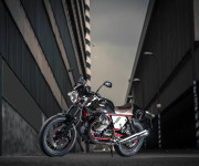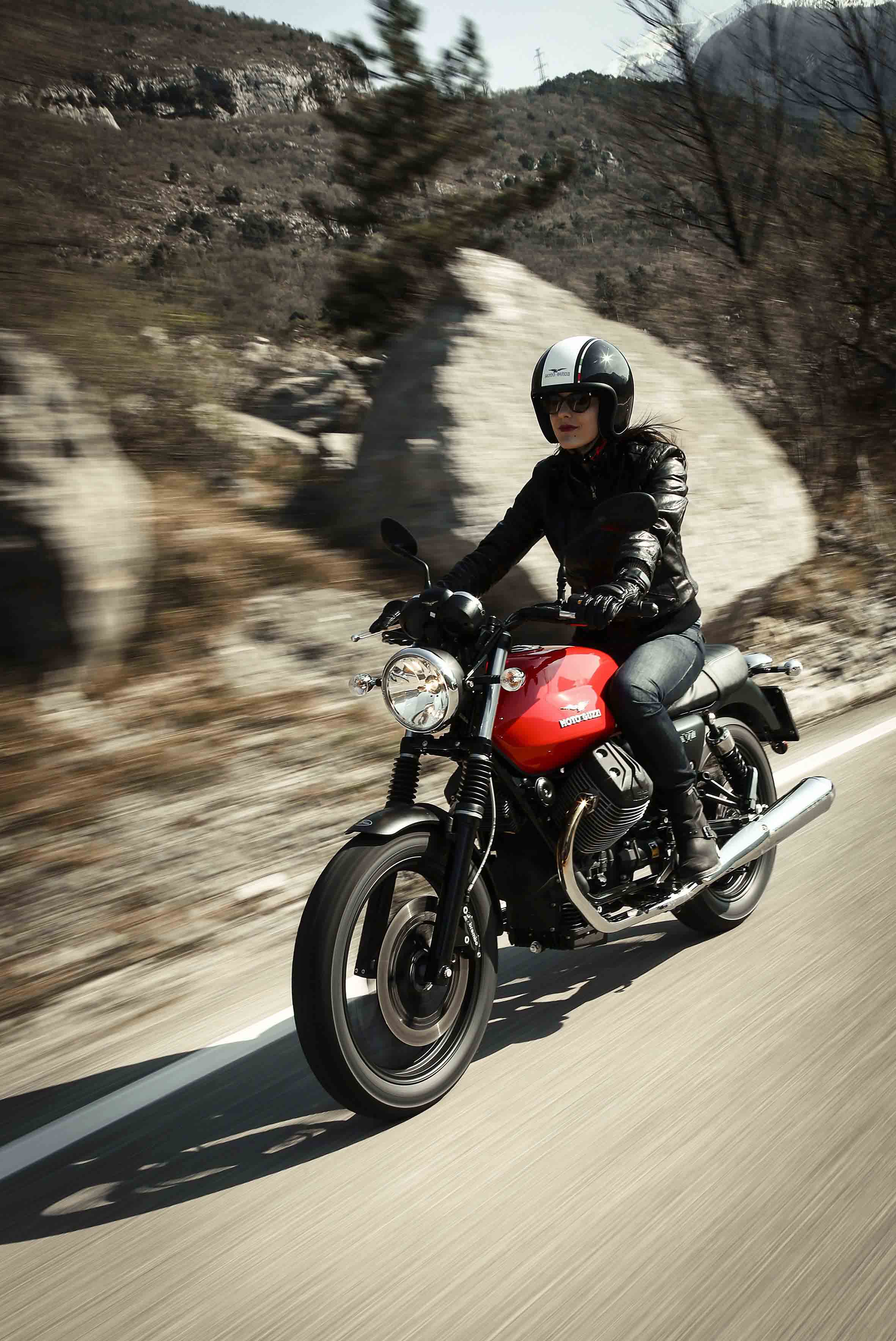MG V7 Stone: Eclettica, essenziale, la V7 Stone riceve un make-up che esalta la sua natura minimalista. Il concetto guida è stato quello di convertire la più accessibile delle V7 a un look total-black, trasformando le cromature in nero, con l’unica eccezione del motore, che conserva i toni cromatici delle leghe di metalli e la lucentezza dell’impianto di scarico. Su tutto il resto della moto, dagli specchietti retrovisori agli ammortizzatori, dai parafanghi alle ruote, fino ai fianchetti, è così il trionfo del nero. Con un look così, è sufficiente cambiare colore al serbatoio per mutare la personalità della moto: sportiva nel nuovo “Rosso Corposo”, elegante nel satinato “Verde Agata” e, metropolitano nell’apprezzatissimo “Nero Ruvido”
