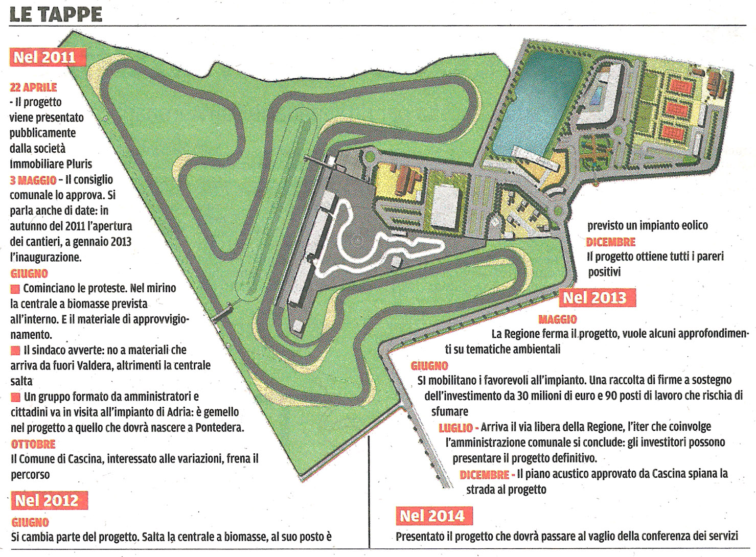 L’Autodromo di Pontedera “prende” forma, un progetto che vedrà, per un investimento di circa 30 milioni di euro, la realizzazione di una pista di 3.550 m, hotel, ristorante, discoteca, centro congressi, centro commerciale e centro sportivo.