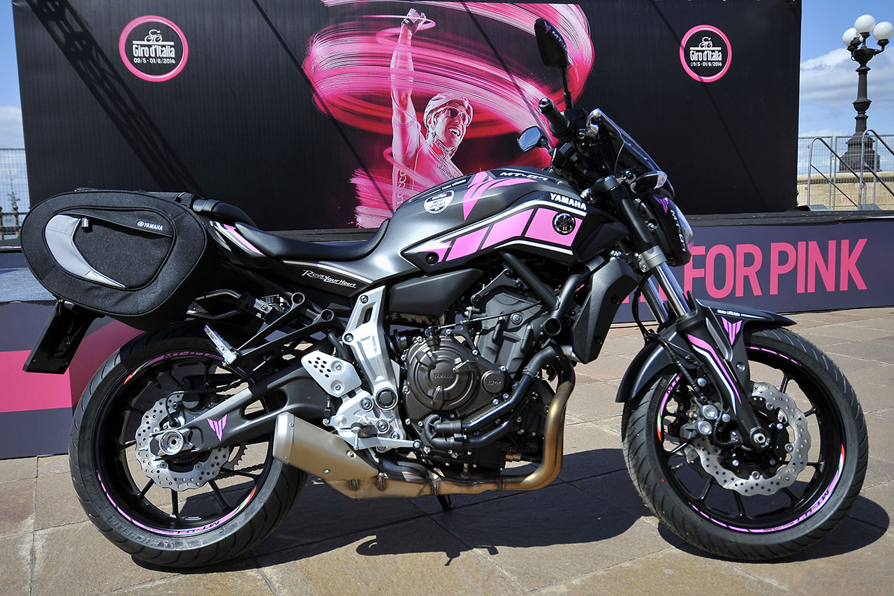 Dopo il recente biennio che ha visto protagonista in gara il Re dei Maxi scooter, Yamaha TMAX, quest’anno moto ufficiale del Giro d’Italia 2014 è la nuovissima e rivoluzionaria bicilindrica entry level Yamaha MT-07, portata in corsa da Yamaha in una versione speciale.