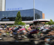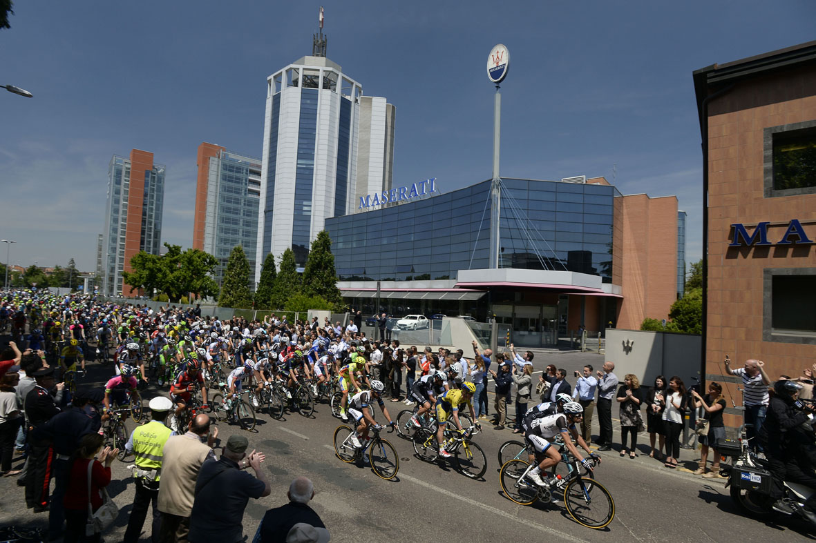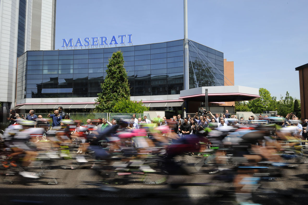 Anche il Giro d’Italia di ciclismo festeggia la Maserati nell’anno del Centenario della fondazione. Oggi pomeriggio intorno alle 13:00, la festosa e multicolore carovana del Giro è transitata davanti all’ingresso della Maserati in via Divisione Acqui a Modena, dove è stato posto il Chilometro Zero della decima tappa – da Modena, appunto, a Salsomaggiore Terme.