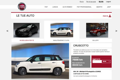 Il secondo costituisce la nuova area personale accessibile ai clienti Fiat, Alfa Romeo, Lancia, Fiat Professional, Abarth e Jeep. Subito dopo l’accesso essi possono trovare consigli personalizzati e informazioni aggiornate per sé e per le loro auto, ad esempio piani di manutenzione in base al numero di km percorsi, equipaggiamento dell’auto, libretto di uso e manutenzione e un’utile agenda online.