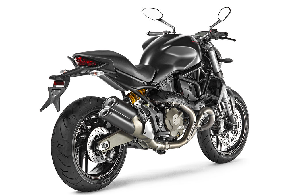 Il Monster 821 viene presentato in due versioni: il Monster 821 Dark, essenziale ed aggressivo nella sua colorazione “Dark Stealth” con telaio e cerchi neri, alla quale si aggiunge il Monster 821, dotato di serie di coprisella passeggero e proposto sia in “Rosso Ducati” (con telaio rosso e cerchi neri) che nella colorazione “Star White Silk” (con telaio e cerchi rossi).